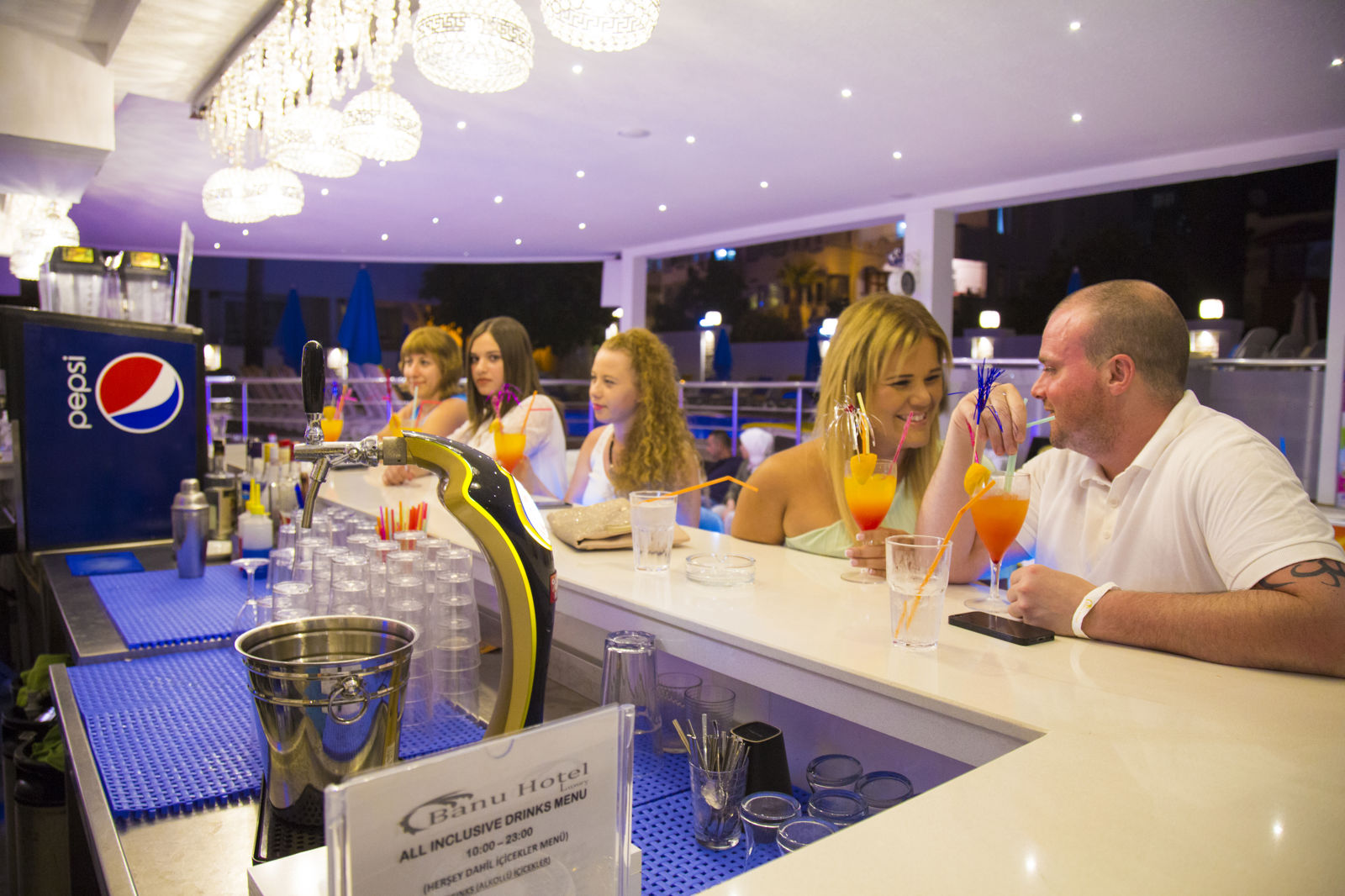 Direct naar: * Ligging () * Faciliteiten () * Restaurants&bars () * Zwembaden () * Hotelkamers () * Activiteiten&ontspanning () * Kinderfaciliteiten () * Verzorging () Ligging Banu Hotel * Ca. 50 meter van het openbare zand-/kiezelstrand, gescheiden door een boulevard * Bushalte op ca. 50 meter * Winkeltjes, bars en restaurants op ca. 300 meter * Centrum van Marmaris op ca. 3 kilometer Faciliteiten Banu Hotel * 4 gebouwen met maximaal 3 verdiepingen * Geen liften aanwezig * 72 kamers * 24-uursreceptie * Lobby * Gratis wifi in het gehele hotel * Internetcafé * Wasservice* * Minimarkt* * Openbare parkeerplaatsen *Tegen betaling Restaurants&bars * 1 buffetrestaurant * 1 poolbar Zwembaden * 1 buitenzwembad * Zonneterras met gratis ligbedden, matrasjes en parasols * Ligbedden en parasols op het strand tegen betaling Hotelkamers * Standaardkamer (1-3 personen) * Ca 18 m² * Airconditioning * Telefoon* * Satelliettelevisie * Minibar (bij aankomst gevuld met water) * Koffie-/theezetfaciliteiten * Kluisje* * Wifi * Douche * Toilet * Föhn * Slippers * Balkon met zitje *Tegen betaling Activiteiten&ontspanning * Tafeltennis * Darts * Biljart Kinderfaciliteiten * 1 kinderzwembad * Speeltuintje * Babybedjes op aanvraag Verzorging Zomer : Banu Hotel * Verblijf o.b.v. All Inclusive: * Ontbijt in buffetvorm (07.30-09.30 uur) * Laat ontbijt in buffetvorm (09.30-10.00 uur) * Lunch in buffetvorm (12.30-14.00 uur) * Diner in buffetvorm (19.00-21.00 uur) * Koffie/thee en koekjes (16.00-17.00 uur) * Geselecteerde lokale alcoholische en alcoholvrije drankjes (10.00 tot 23.00 uur) * Tegen betaling: import drankjes, cocktails, verse vruchtensappen, Turkse koffie, Espresso, ijs, (fris)drank in flessen en alle drankjes na 23.00 uur