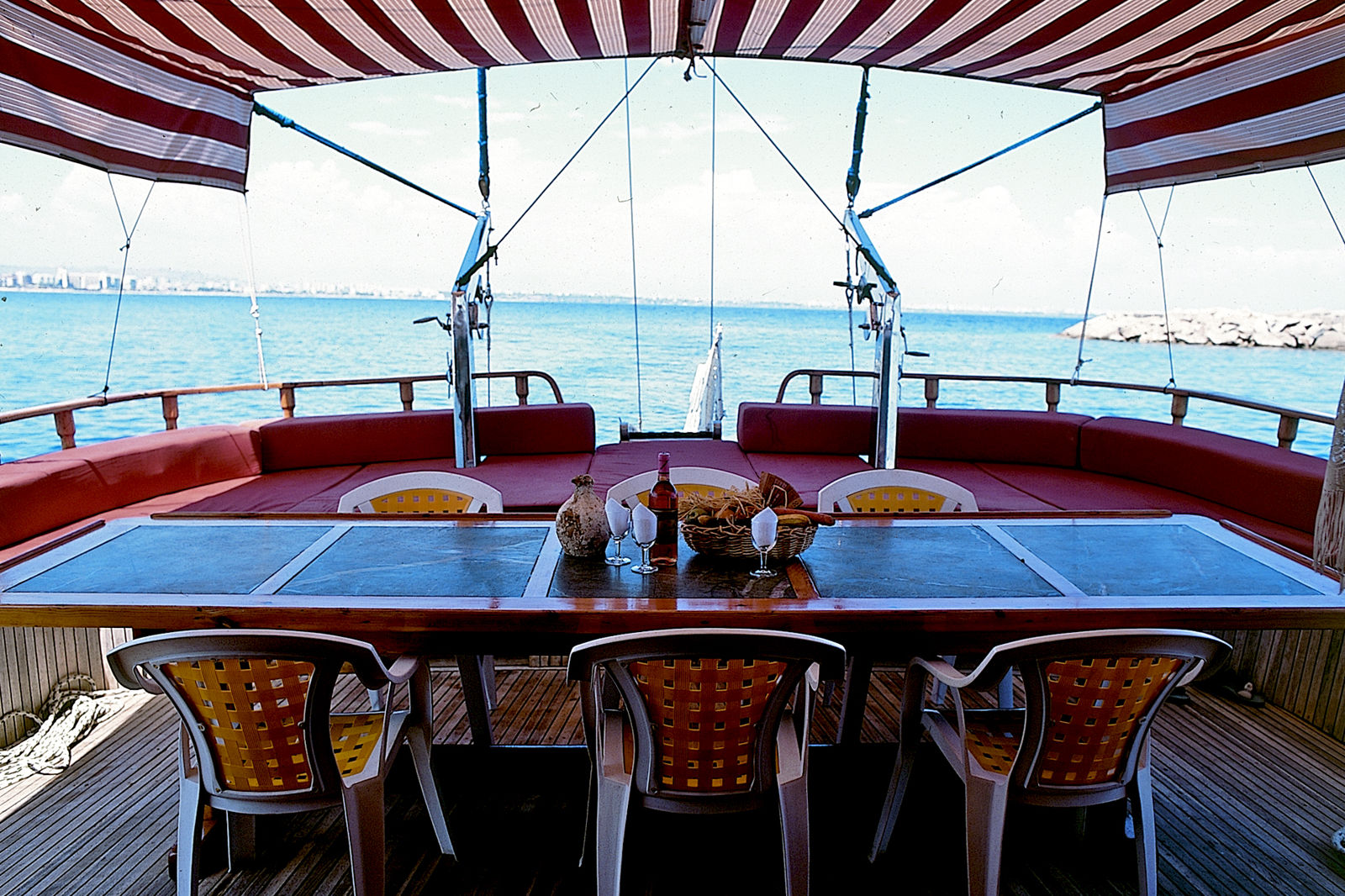 Hut Een gület boot is tussen de 19 tot 24 meter lang en je hebt dus aan boord beperkt ruimte. Dat is uiteraard ook de charme van een vaarvakantie. De hutten zijn tussen de 5 en 8m2 en hebben een 2 persoonsbed (sommige boten hebben hutten met 2 losse bedden, echter kunnen wij je dit voor vertrek niet toezeggen) een raampje, een kleine douche met toilet en een kleine kledingkast. Aan boord zijn er maximaal 6 tot 8 hutten. Aan boord word je verwend door een kok een matroos en is er een kapitein die je door de Turkse wateren zal leiden en je de mooiste plekjes zal laten zien. Wat is er allemaal inbegrepen? * Retourvlucht * Transfer van luchthaven naar jachthaven, van de jachthaven naar het Terrace Elite en terug naar de luchthaven. * Je verblijft op basis van Volpension (optie 1); Ontbijt*: koffie, thee, jam, honing, brood, olijfjes, Turkse kaas, tomaten, komkommers, eitjes. Lunch en diner*: je krijgt een uniek kijkje in de echte Turkse keuken; de kok zal je verwennen met Turkse gerechten zoals salades, vleesgerechten, pasta’s en volop fruit. * Tegen een meerprijs verblijf je op basis van All Inclusive (optie 2): ontbijt, lunch en diner. Koffie/thee en koekjes van 17.00 tot 17.30uur. Een selectie van lokale alcoholische en alcoholvrije drankjes van 11.00 tot 23.00 uur. Tegen betaling: verse vruchtensappen, Efes bier, import drankjes, alle consumpties op de dag van aankomst tot het diner en alle consumpties op de dag van vertrek. Let op: De All Inclusive formule start op dedag van aankomst met diner en op de dag van vertrek is de All Inclusive formule niet meer inbegrepen. * 7 nachten verblijf in Terrace Elite op basis van Ultra All Inclusive en in een standaardkamer. * Aan boord van Blue Cruise: Visspulletjes * Aan boord van Blue Cruise: Snorkels * Aan boordvan Blue Cruise: Flippers * Aan boord van Blue Cruise: Een bibliotheekje met internationale boeken, die de crew graag uitbreidt met de boeken die je achterlaat. Wat is er niet inbegrepen? * Eventuele optionele excursies * Alle drankjes die je nuttigt bij verblijf o.b.v. Volpension (optie 1). Deze worden door de crew aangeboden tegen redelijke prijzen. Aan het einde van de reis reken je af. Helaas is het niet toegestaan om zelf drank mee aan boord te nemen. Een pak koekjes, nootjes en snoepjes zijn uiteraard wel toegestaan. * Strandhanddoeken voor op het dek en voor na het zwemmen,eventueel een handdoek voor het douchen en het wassen. Je ontvangt niet dagelijks schone handdoeken. Wat heb ik aan boord allemaal nodig? * Een videocamera of fototoestel in de eerste plaats! * Hartje zomer adviseren wij luchtige zomer- en badkleding gedurende de dag. In het voor-en naseizoenheb je ’s avonds of in de vroege ochtenduren een trui en vest nodig. * Als je op de boot verblijft zijn slippers of blote voeten het ideale schoeisel. Maar sport- of loopschoenen zijn belangrijk indien je wenst te wandelen gedurende de stops langs de kust of in de dorpjes. * Niet te vergeten:een handdoek, zwemkleding, zonnecrème, zonnebril en hoofddeksel. * Het is uiteraard aangenaam ‘s nachts op het dek te slapen om de sterren en de maan te bekijken. Een slaapzak of laken kan welkom zijn. * Uiteraard ben je op de boot om te genieten van de zee, de natuur en om uit te rusten. Wij adviseren je ook boeken of gezelschapsspelen mee te brengen. * Het voltage aan boord is 220 volt. En beperkt te gebruiken. * In verband met beperkte ruimte in je hut adviseren wij je geen hardschalige koffer mee te nemen. Veiligheid aan boord Uiteraard staat veiligheid boven alles. De bemanning beschikt over een eerste hulp-koffer, en voor noodgevallen is er een 24-uurs radioverbinding met de vaste wal. Langs de route zijn verschillende klinieken en doktersposten. De bemanning zal in geval van nood tevens contact opnemen met de reisleiding van Corendon Verzorging: Je verblijft tijdens de Blue Cruise op basis van Volpension (optie 1); ontbijt, lunch en diner. Tegen een meerprijs kun je All Inclusive (optie 2) boeken. Let op: De All Inclusive formule start op de dag van aankomst met diner en op de dag van vertrek is de All Inclusive formule niet meer inbegrepen. Inbegrepen zijn: Ontbijt, lunch en diner. Koffie/thee en koekjes van 17.00 tot 17.30 uur. Een selectie van lokale alcoholische en alcoholvrije drankjes van 11.00 tot 23.00 uur. Tegen betaling: verse vruchtensappen, Efes bier, import drankjes, alle consumpties op de dag van aankomst tot het diner en alle consumpties op de dag van vertrek. Dag tot dag programma: Dag 1: aan boord Dag 2: de kust van Kemer, Olympos&de baai van Adrasan Dag 3: Simena&Gökkaya Dag 4: de baai van Uçagiz Dag 5: Cayagizi&Myra Dag 6: de baai van Portaceneviz&Phaselis Dag 7: Alacusa, de baai van Ayigisi&Kemer of Antalya Dag 8: op dag 8 van boord, transfer naar&en de laatste week verblijf in hotel Terrace Elite Bekijk hieronder het uitgebreide dag tot dag programma: Na een heerlijk verblijf aan boord van de cruise, zet je weer voet op vaste bodem en reis je naar het prachtige hotel Terrace Elite. Klik hier () voor meer informatie over dit hotel. Hier geniet je van de laatste 7 nachten van je heerlijke vakantie!