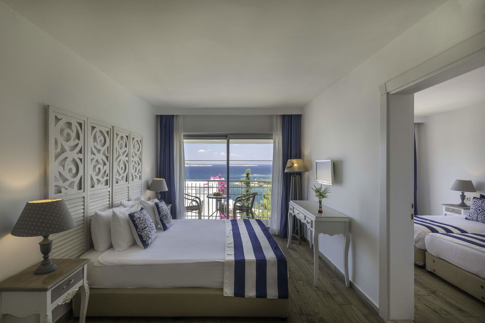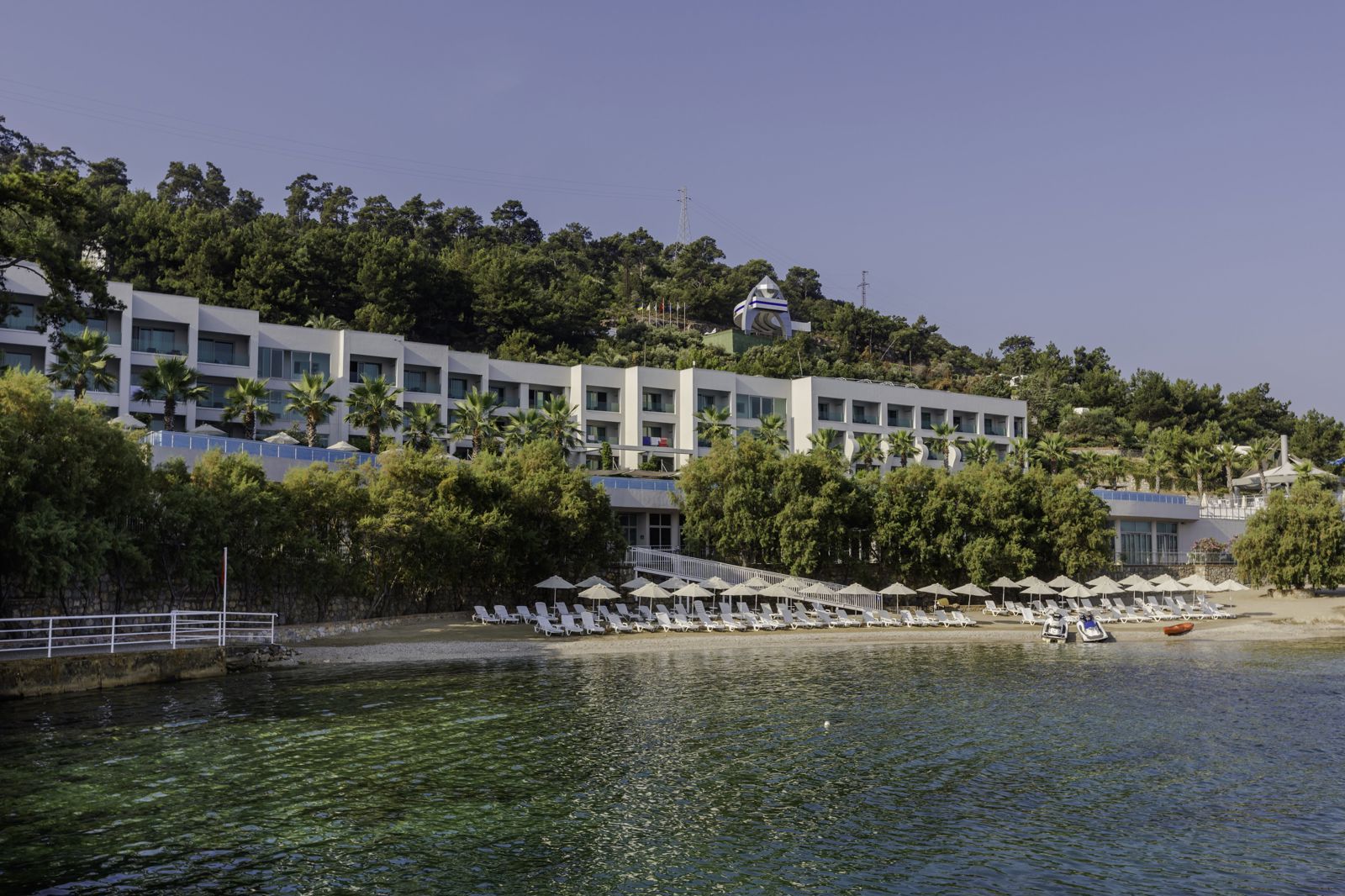Direct naar: * Ligging () * Faciliteiten () * Restaurants&Bars () * Hotelkamers () * Sport&Ontspanning () * Kinderfaciliteiten () * Zwembaden&Strand () * Verzorging () Ligging: Blue Dreams Resort * Tegen een heuvel aangebouwd * Aan zee gelegen * Direct aan het kiezelstrand * Ca. 4 kilometer van Torba * Ca. 10 kilometer van Bodrum * Bushalte voor het resort Let op: vanwege de niveauverschillen is dit hotel niet geschikt voor mensen die slecht ter been zijn Faciliteiten * 3 gebouwen met maximaal 3 verdiepingen * 3 liften * 350 kamers * 24-uursreceptie * Bagageruimte * Wifi in de meeste openbare ruimtes * Lobby * Tuin * Kapsalon* * Winkeltje en minimarkt* * Wasservice* * Doktersservice* * Privé parkeerterrein *Tegen betaling Restaurants&bars * 1 buffetrestaurant * 3à-la-carterestaurants (vooraf reserveren) * 5 bars * Disco Hotelkamers * Standaard clubkamer (1-3 personen) * Ca. 20 m² * De kamer is per lift te bereiken * Telefoon* * Airconditioning * Televisie * Minibar (gevuld met frisdranken en water) * Kluisje * Koffie-/theezetfaciliteiten * Wifi * Inloopdouche * Toilet * Föhn * Uitzicht op de tuin * Tegen een meerprijs boekbaar met zeezicht (ca. 20-22 m²) *Tegen betaling * Deluxe kamer (1-4 personen) * Ca. 40 m² * Dezelfde faciliteiten als de Standaard clubkamer * Zeezicht * Balkon met zitje *Standaardkamer strandzijde (1-4 personen) * Ca. 30-35 m² * Zeezicht * Dezelfde faciliteiten als de Standaard clubkamer * Familiekamer club (3-4 personen) * Ca. 35 m² * De kamer is per lift te bereiken * Bestaat uit 2 ruimtes met een tussendeur * Dezelfde faciliteiten als de Standaard clubkamer Sport&Ontspanning * Fitness * Aerobics * Yoga * Basketbal * Beachvolleybal * Darts * Tafeltennis * Tennis (verlichting tegen betaling) * Watersporten aan het strand* * Turks bad * Sauna * Binnenzwembad * Massages en behandelingen* * Dagelijks entertainment *Tegen betaling Kinderfaciliteiten * 2 kinderzwembaden * Miniclub 6 dagen per week (4-12 jaar) * Nederlandstalig kinderenterainment of -animatie * Minidisco * Speeltuintje * Kinderbedjes op aanvraag Zwembaden&Strand * 5 buitenzwembaden waarvanéén met 4 glijbanen * 1 binnenzwembad * Zonneterras * Privéstrand * Ligbedden, matrasjes en parasols gratis (zwembad en strand) * Badhanddoekenservice gratis (zwembad) Verzorging Zomer: Blue Dreams Resort * Verblijf o.b.v. Ultra All Inclusive: * Ontbijt in buffetvorm (07.00-10.00 uur) * Laat ontbijt in buffetvorm (10.00-10.30 uur) * Lunch in buffetvorm (12.30-14.00 uur) * Diner in buffetvorm (19.00-21.30 uur) * Snacks (12.00-17.00 uur) * Koffie/thee en koekjes (17.00-19.00 uur) * IJs (16.00-17.00 uur) * Nachtsnack (00.00-03.00 uur) * Tijdens je verblijf van minimaal 5 nachten mag je 1x à-la-carte dineren in het vis à-la-carterestaurant (vooraf reserveren) * Lokale (non-)alcoholische dranken en een kleine selectie import dranken (24/7) * Tegen betaling: overige import drankjes, drankjes in de disco, diner in 2 à-la-carterestaurants (vooraf reserveren) en energiedrankjes