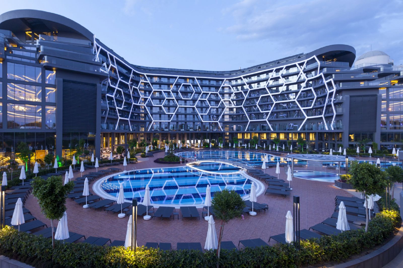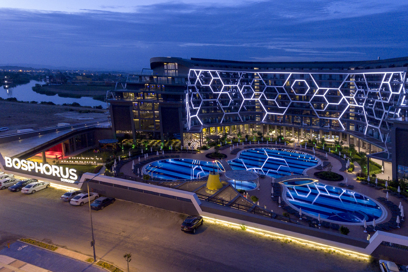 Direct naar: * Ligging () * Faciliteiten () * Restaurants&bars () * Zwembaden () * Hotelkamers () * Activiteiten&ontspanning () * Kinderfaciliteiten () * Verzorging () Ligging Bosphorus Sorgun Hotel * Gelegen in Sorgun * Centrum van Manavgat en oude centrum van Side op ca. 7 kilometer * Op ca. 250 meter van het privéstrand, gescheiden door een weg * Bushalte op ca. 150 meter Faciliteiten Bosphorus Sorgun Hotel * 1 gebouw met maximaal 10 verdiepingen * 455 kamers * Lobby * Bagageruimte * 24-uursreceptie * 4 liften * Tuin * Wasservice* * Winkeltjes en minimarkt* * Doktersservice* * Kapsalon* * Roomservice* * Wifi in de lobby, bij het zwembad en strand * Tegen betaling Restaurants&bars * 1 buffetrestaurant * 4à-la-carterestaurants (vooraf reserveren, kinderen vanaf 12 jaar worden toegelaten) * 2 snackrestaurants * Patisserie * 5 bars * Disco Zwembaden * 2 buitenzwembaden * 1 buitenzwembad met 3 glijbanen (op vaste tijden geopend) * Zonneterras * Privéstrand * Ligbedden en parasolsgratis (zwembad en strand) * Gratis badhanddoekenservice Hotelkamers * Standaardkamer (1-3 personen) * Ca. 30-33 m² * Airconditioning * Telefoon * Televisie * Minibar (gevuld met water, frisdrank en bier) * Kluisje * Wifi * Koffie-/theezetfaciliteiten * Douche * Toilet* Föhn * Badjas* (op aanvraag) * Slippers * Balkon met zitje * Tegen betaling Activiteiten&ontspanning * Fitness * Aerobics * Beachvolleybal * Boccia * Darts * Tafelvoetbal * Biljart * Tafeltennis * Minigolf * Gameroom* * Watersporten aan het strand* * Sauna * Turks bad * Binnenzwembad * Bubbelbad * Massages* * 6 dagen per week entertainment Kinderfaciliteiten * 1 kinderzwembad * 1 binnen kinderzwembad * Miniclub (4-12 jaar, 6 dagen per week) * Minidisco 6 dagen per week * Speeltuintje * Babybedjes (op aanvraag) Verzorging zomer: Bosphorus Sorgun Hotel * Verblijf o.b.v. All Inclusive: * Ontbijt in buffetvorm (07.00-10.00 uur) * Laat ontbijt in buffetvorm (10.00-11.00 uur) * Lunch in buffetvorm (12.30-14.30 uur) * Diner in buffetvorm (19.00-21.00 uur) * Diverse snacks (12.00-16.00 uur) * Koekjes (11.00-18.00 uur) * IJsjes (16.00-17.00 uur) * Middernachtsnack (23.30-02.00 uur) * Eénmaal gratis dineren bij een van de à-la-carterestaurants bij een verblijf tot 7 dagen * Geselecteerde lokale (non-)alcoholische dranken en een selectie import dranken (10.00-00.00 uur) * Tegen betaling: overige import dranken, roomservice, verse vruchtensappen, energie drankjes, drinken in flessen, speciale wijnen en alle dranken na 00.00 uur