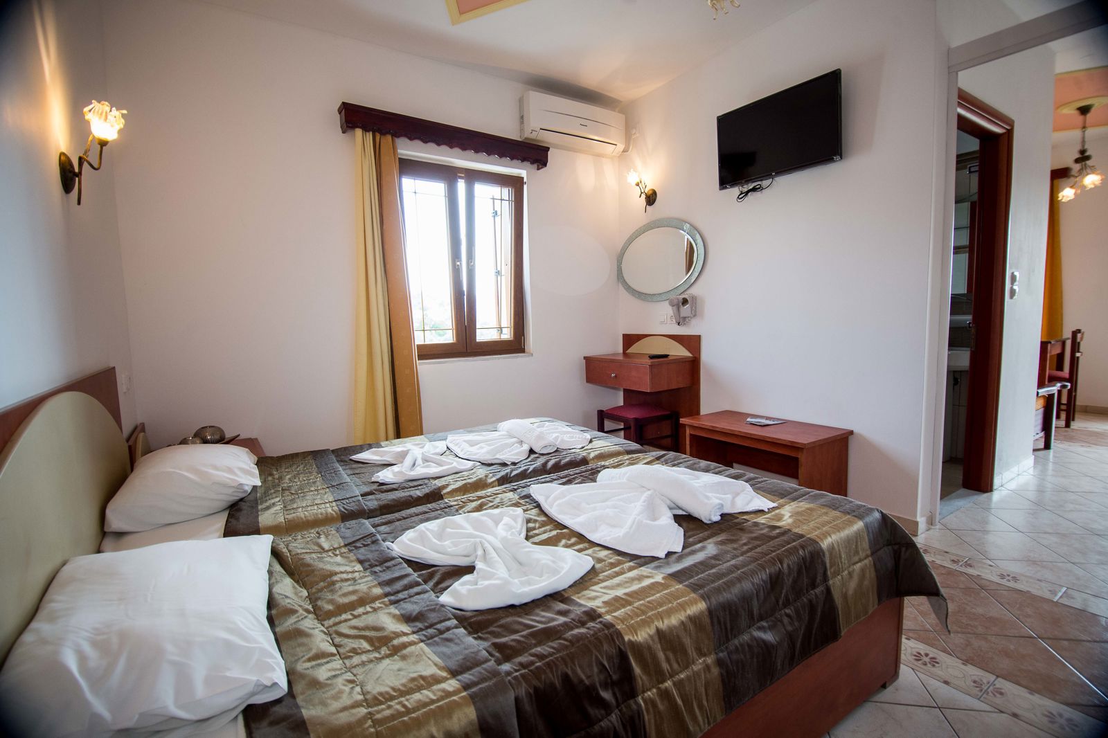 Direct naar: * Ligging () * Faciliteiten () * Restaurants&Bars () * Hotelkamers () * Kinderfaciliteiten () * Zwembaden&Strand () * Verzorging () * Ligging: Christina’s Gardens * Gelegen in Anaxos * Dichtstbijzijnde restaurants en bars op ca. 200 meter * Bushalte op ca. 200 meter * Op ca. 1 kilometer van het strand en de boulevard * Het prachtige centrum van Petra op ca. 2.5 kilometer * Op ca. 8 kilometer van het centrum van Molyvos Faciliteiten * 10 gebouwen met maximaal 2 verdiepingen * 46 appartementen * Geen liften aanwezig * Receptie * Lobby * Bagageruimte * Wifi * Prachtige tuinen * Privé parkeerterrein Restaurants&bars * 1 restaurant * 2 bars Hotelkamers * Studio type 1 (1-2 personen) * Ca. 25 m² * Airconditioning* * Telefoon* * Televisie * Kluisje* * Wifi * Kitchenette * 2-pits kookplaat * Koelkastje * Waterkoker * Douche * Toilet * Föhn * Balkon of terras met zitje *Tegen betaling * Studio type 2 (1-3 personen) * Ca. 25 m² * Dezelfde faciliteiten als studio type 1 * Andere inrichting * Extra sofa bed * 2-kamerappartement (1-4 personen) * Ca. 40 m² * Dezelfde faciliteiten als de studio * Woon-/slaapkamer met slaapbank en een aparte slaapkamer * Niet alle appartementen hebben een deur tussen de woon-/slaapkamer en de slaapkamer* Niet alle appartementen hebben een balkon of terras * Voordeel 2-kamerappartement (1-4 personen) * Ca. 40 m² * Dezelfde faciliteiten als het 2-kamerappartement * (Gedeeltelijk) onder straatniveau en hebben geen (uit)zicht Let op: de babybedjes zijn vrij klein (115 x 65 x 76 cm) en tegen betaling. Indien het kindje niet in het babybedje past, moet hij/zij bij de ouders in bed slapen. Er is geen ruimte voor een extra bed. Kinderfaciliteiten * 1 kinderbad * Speeltuintje * Babybedje op aanvraag en tegen betaling Zwembad * 1 buitenzwembad * Zonneterras met gratis ligbedden en parasols * Matrasjes en badhanddoekenservice tegen betaling Verzorging Zomer: Christina’s Gardens * Verblijf o.b.v. Logies * Tegen een meerprijs verblijf je o.b.v. Logies&Ontbijt * Tegen een meerprijs verblijf je o.b.v. Halfpension