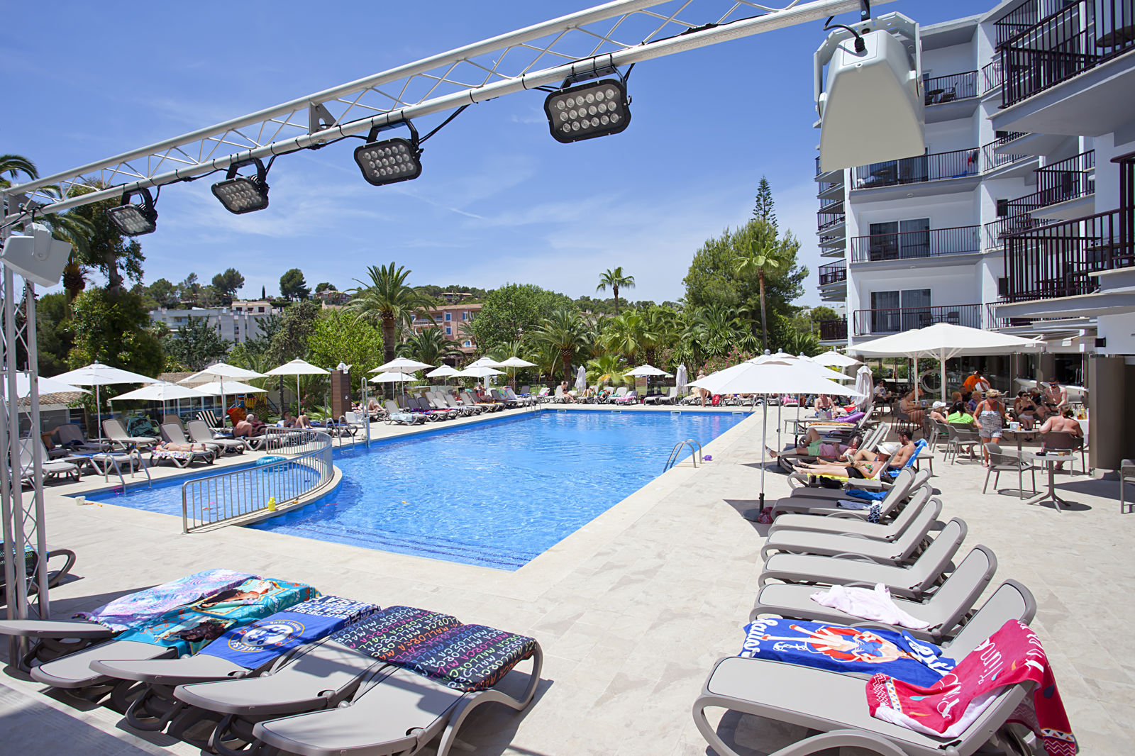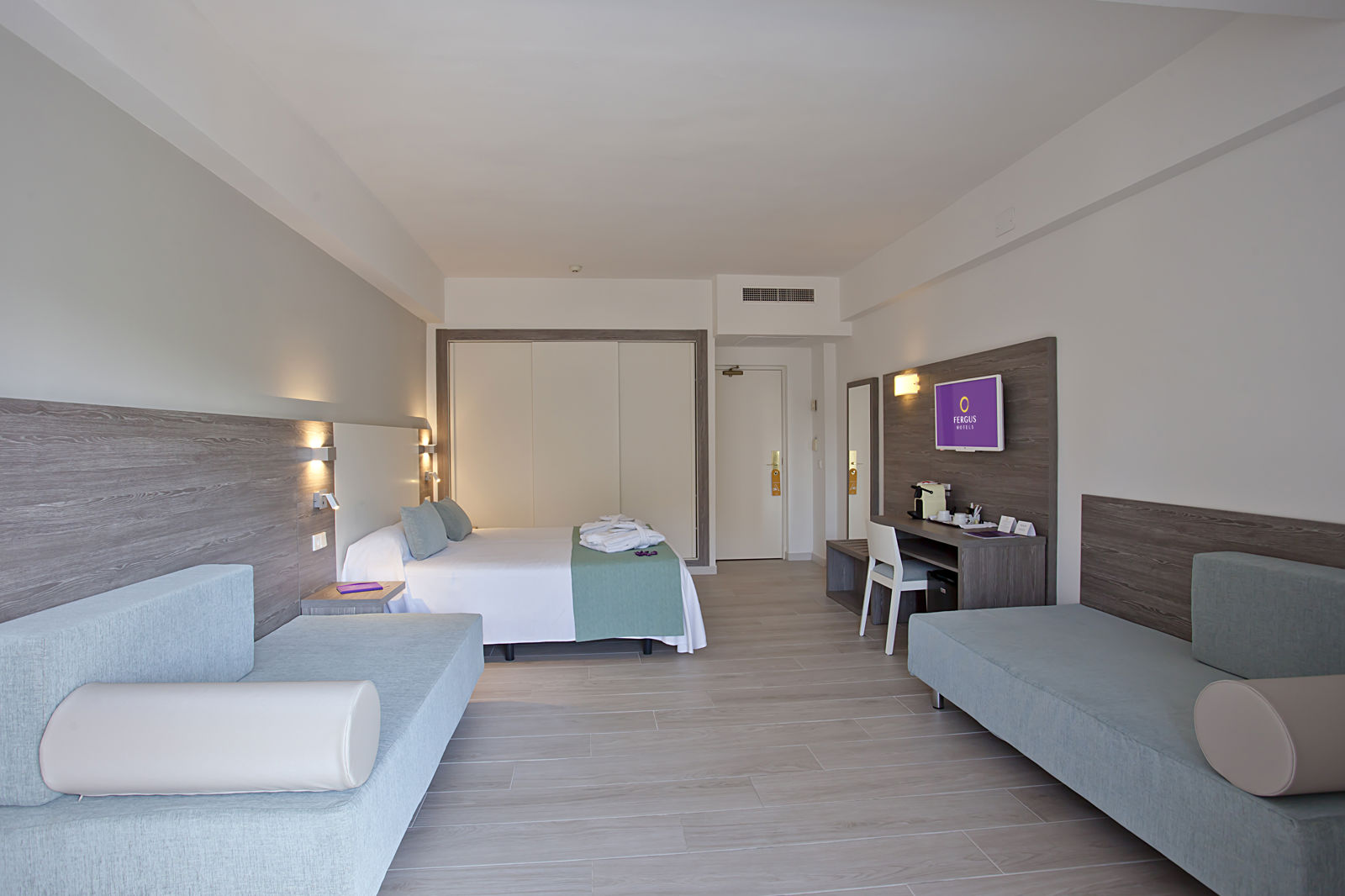 Direct naar: * Ligging () * Faciliteiten () * Restaurants&Bars () * Hotelkamers () * Sport&Ontspanning () * Kinderfaciliteiten () * Zwembaden () * Verzorging Zomer () Ligging: Fergus Bermudas in Palma Nova * Op ca. 100 m van het openbare strand * Ca. 200 m van het centrum van Palma Nova * Diverse restaurants, bars en winkels op loopafstand * Bushalte voor de deur van het hotel Faciliteiten * 126 kamers verdeeld over 1 gebouw met 5 etages * Lift aanwezig * Moderne lobby met 24-uursreceptie * Gratis wifi * Bagageruimte * Zonneweide * Wasservice* * Roomservice* * Doktersservice* * Gratis parkeren op privé of openbaar parkeerterrein * Tegen betaling Restaurants&bars * Buffetrestaurant met thema-avonden * Poolbar voor drankjes en snacks Hotelkamers * Standaardkamer (1-3 personen) * Modern ingericht * Airconditioning * Telefoon* * Satelliettelevisie * Koffie-/theefaciliteiten* * Minibar* * Kluisje* * Gratis wifi * Bad of douche * Badjas en slippers * Toilet * Föhn * Balkon of terras met zitje * Met toeslag is de kamer ook te boeken met zwembadzicht (2-3 personen) * Tegen betaling * Juniorsuite (min. 2 pers. en max. 3 volw. + 1 kind) * Zelfde faciliteiten als standaardkamer, echter ruimer * Koffie-/theezetfaciliteiten Sport&Ontspanning * Beachvolleybal * Aerobics * Yoga * Tennis * Boccia * Darts * Voetbal * Waterpolo * Tafeltennis * Biljart* * Massages* * Watersport aan het strand* * Entertainmentprogramma (6x per week) *Tegen betaling Kinderfaciliteiten * Apart kinderzwembad * Miniclub (4-12 jaar, 6x per week) * Minidisco * Speeltuintje Zwembaden * Buitenzwembad * Zonneterras met gratis ligbedden, matrasjes en parasols * Zonneweide * Badhanddoekenservice (met borg) * Ligbedden en parasols op het strand tegen betaling Verzorging zomer : Fergus Bermudas * Verblijf op basis van All Inclusive * Ontbijt in buffetvorm (08.00 – 10.30 uur * Lunch in buffetvorm (13.00 – 15.00 uur) * Diner in buffetvorm (19.00 – 21.30 uur) * Snacks (11.00-13.00/15.00-18.00 uur) * Geselecteerd lokale (non-)alcoholische drankjes (11.00 – 23.00 uur) * Tegen betaling: roomservice, import drankjes en alles na 23.00 uur