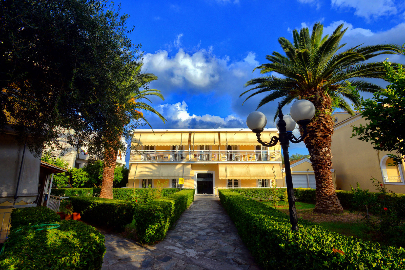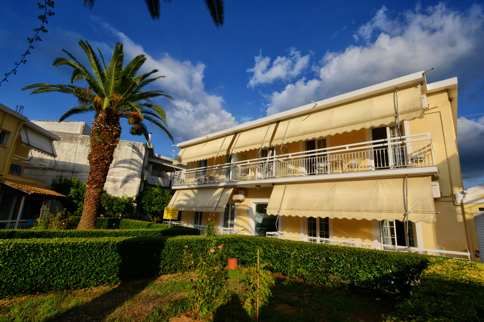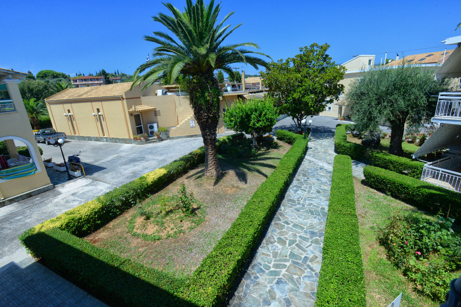 Ligging: Filippas Appartementen is gelegen in het centrum van Gouvia en op ca. 200 meter van het zand-/kiezelstrand. Diverse winkels, een supermarkt, restaurants en bars bevinden zich in de directe omgeving. Dichtstbijzijnde bushalte op ca. 50 meter afstand. Corfu-Stad ligt op ca. 7 kilometer afstand en de luchthaven op ca. 8 kilometer. Faciliteiten: Filippas is een kleinschalig 3-sterren appartementencomplex, beschikt over 18 studio’s en appartementen verdeeld over 3 gebouwtjes met max. 1 verdieping (geen liften aanwezig). In de lobby is een receptie, een bagageruimte en er is een restaurant (à la carte). In de tuin vindt u het zwembad met een kinderbad. De ligbedden en parasols staan hier gratis ter beschikking; ligbeddenen parasols op het strand zijn tegen betaling. Verder beschikt Filippas over gratis parkeermogelijkheden en kunt u gratis gebruikmaken van wifi bij het zwembad. Uw studio/appartement: De studio’s (2 personen) van Filippas Appartementen zijn voorzien van een kitchenette met koelkast, 2-pits kookplaat en oventje, satelliet televisie, een huurkluisje, airconditioning (tegen betaling), gratis wifi en een balkon of terras met zitje. Badkamer met douche en toilet. De 3-kamerappartementen (2-4 personen) beschikken over dezelfde faciliteiten als de studio’s, maar met een aparte 2-persoonsslaapkamer. Badkamer met bad of douche en toilet. Sport&Ontspanning: Op het strand worden diverse (gemotoriseerde) watersporten aangeboden (tegen betaling). Verzorging Zomer 2017: U verblijft in Filippas Appartementen op basis van Logies. Er zijn geen maaltijden inbegrepen. Extra informatie: Bij deze pakketreis is een huurauto inbegrepen, daarom vervalt de transfer van de luchthaven naar de accommodatie en vice versa. Bij aankomst op uw bestemming staat de auto voor u klaar op de luchthaven. Op de dag van vertrek levert u de auto hier ook weer in. De reisleiding, aanwezig op de luchthaven, verwijst u naar het autoverhuurbedrijf en geeft u een welkomstenvelop. Standaard is bij uw reis een huurauto categorie A inbegrepen. Denk hierbij aan een Suzuki Alto of gelijkwaardig. De bagageruimte is in veel gevallen beperkt. Tegen een meerprijs kiest u uit een categorie C of D auto. Denk bij categorie C aan een Hyundai I20 of gelijkwaardig. Categorie D betreft een Hyundai Accent of gelijkwaardig. Is uw reisgezelschap te groot vooréén auto? Boek dan een tweede auto bij. Voor prijzen en beschikbaarheid kunt u contact opnemen met ons Contact Center. Informatie&Voorwaarden Huurauto (https://www.corendon.nl/autohuur-corfu)