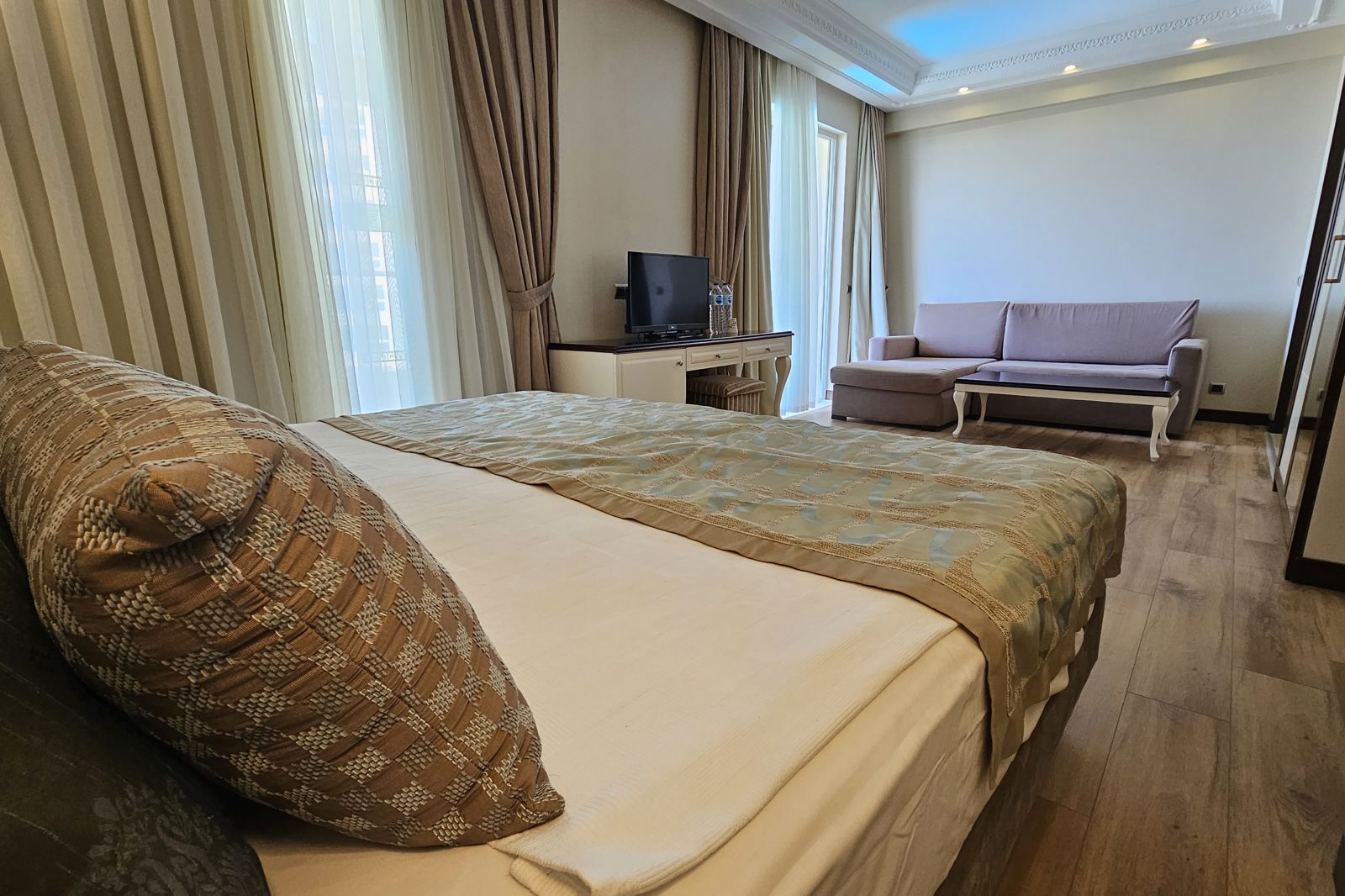 Direct naar: * Ligging () * Faciliteiten () * Restaurants&Bars () * Hotelkamers () * Sport&Ontspanning () * Kinderfaciliteiten () * Zwembaden&Strand () * Verzorging () Ligging: Gold City Hotel * Gelegen op een heuvel * Ca. 4 kilometer van het privéstrand * Ca. 5 kilometer van Mahmutlar * Alanya op ca. 15 kilometer * Gratis shuttleservice naar het strand * Tegen betaling een shuttleservice naar Alanya Faciliteiten * 2 gebouwen met 16 verdiepingen * 6 liften * 300 kamers * 24-uursreceptie * Bagageruimte * Lobby * Tuin* Wifi in de openbare ruimtes * Kapsalon* * Winkeltjes en minimarkt* * Wasservice* * Doktersservice* * Privé parkeerterrein *Tegen betaling Restaurants&bars * 1 buffetrestaurant * 3à-la-carterestaurants (vooraf reserveren) * 4 bars * Disco (drankjes tegen betaling) Hotelkamers * Standaardkamer deluxe (1-3 personen) * Ca. 24 m² * Telefoon* * Airconditioning * Satelliettelevisie * Minibar (gevuld met water) * Kluisje * Wifi * Bad/douche * Toilet *Föhn * Balkon of terras met zitje * De kindvriendelijke kamer (4 personen) heeft dezelfde faciliteiten als de standaardkamer deluxe, maar de 2 kinderen (3 t/m 12 jaar) zijn gratis * De voordeelkamer (2 personen) kan qua grootte, ligging en faciliteiten afwijken van de Standaardkamer deluxe, deze kamer heeft geen uitzicht *Tegen betaling * Suite deluxe (1-3 personen) * Ca. 51 m² * Dezelfde faciliteiten als de standaardkamer deluxe * Familiekamer suite (3-5 personen) * Ca. 101 m² * Bestaat uit een woon-/slaapkamer met slaapbank en 2 aparte slaapkamers * Dezelfde faciliteiten als de standaardkamer deluxe * Kitchenette met koelkast (geen minibar), oven, kookplaten en een afwasmachine. Sport&Ontspanning * Fitness * Basketbal* * Volleybal* * Beachvolleybal * Darts * Voetbal* * Tafelvoetbal* * Biljart* * Tafeltennis * Tennis* * Bowlen* * Gameroom* * Watersporten aan het strand* * Turks bad * Sauna * Binnenzwembad * Bubbelbad * Massages en behandelingen* * Beperkt entertainment *Tegen betaling Kinderfaciliteiten * 1 kinderzwembad * Miniclub 6 dagen per week (4-12 jaar) * Minidisco 6 dagen per week * Speeltuintje Zwembaden&Strand * 2 buitenzwembaden * Aquapark met 21 glijbanen (op vaste tijden geopend) * 1 binnenzwembad * Zonneterras * Privéstrand * Ligbedden en parasols gratis (zwembad en strand) * Gratis badhanddoekenservice Verzorging Zomer: Gold City Hotel * Verblijf o.b.v. All Inclusive: * Ontbijt in buffetvorm (07.00-10.00 uur) * Laat ontbijt in buffetvorm (10.00-11.00 uur) * Lunch in buffetvorm (12.30-14.30 uur) * Diner in buffetvorm (18.30-21.00 uur) * Snacks (12.30-16.30 uur) * Koffie/thee en koekjes (15.30-17.30 uur) * IJs (15.00-16.00 uur) * Nachtsnack (00.00-01.00 uur) * Bij verblijf van minimaal 6 dagen kun je 1 keer dineren in het World Cuisine à-la-carterestaurant (vooraf reserveren)* Geselecteerde lokale alcoholische en alcoholvrije drankjes en een aantal import drankjes van 10.00 tot 00.00 uur * Tegen betaling: importdrankjes, diner in 3 à-la-carterestaurants (vooraf reserveren), roomservice, de Zodiac bar, verse vruchtensappen en alle drankjes na 00.00 uur