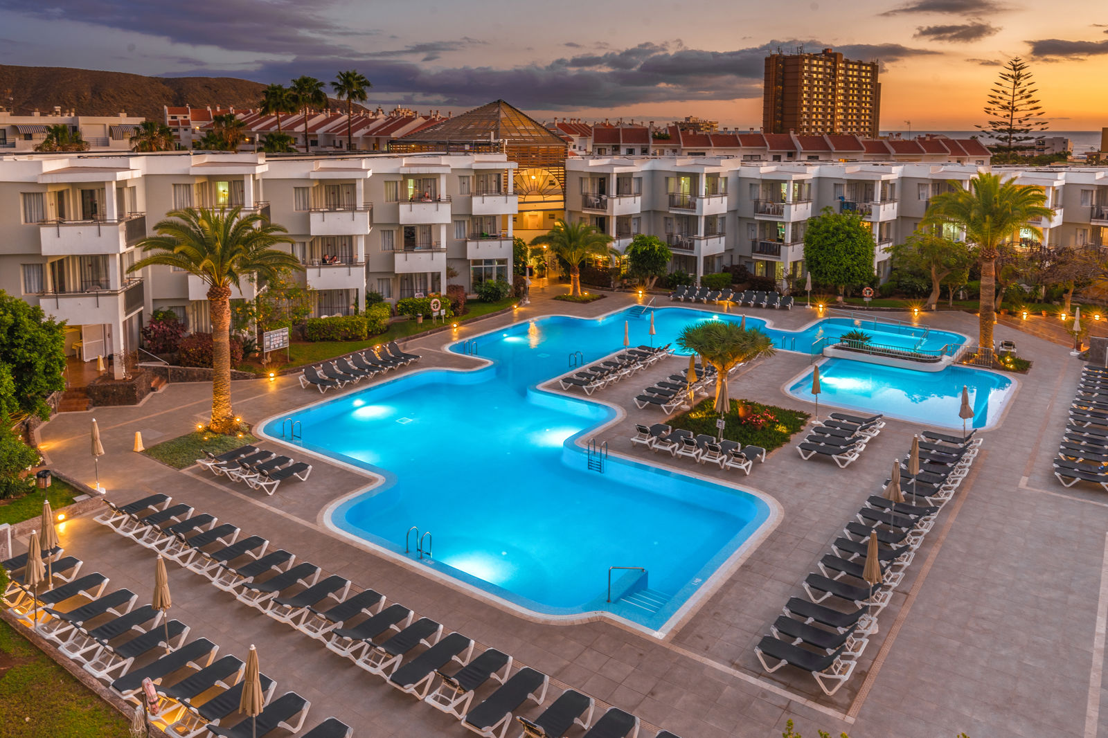 Zomer Wanneer je tussen 01-04-2024 en 31-10-2024 in deze accommodatie verblijft, is onderstaande informatie van toepassing. * Ligging * Openbaar strand Los Cristianos op circa 800 meter * Dichtstbijzijnde winkel op circa 200 meter * Dichtstbijzijnde restaurant op circa 100 meter * Aqualand op circa 3 kilometer * Siam Park op circa 2,5 kilometer * Los Cristianos op circa 500 meter * Bushalte op circa 100 meter * Algemeen&faciliteiten * 5 gebouwen * Maximaal 7 verdiepingen * 188 kamers * Receptie * 24 uur per dag open * Lobby * 2 liften * Bagageruimte * Wifi in diverse openbare ruimtes gratis * Internetruimte gratis * Winkel (minimarkt) * Wasservice tegen betaling * Medische service tegen betaling * Tuin * Openbare parkeergelegenheid gratis * Restaurants&bars * Restaurant * Snackbar * Zwembaden * Buitenzwembad * Verwarmd * Buitenzwembad voor kinderen * Verwarmd * Terras * Ligbedden gratis * Parasol gratis * Activiteiten&ontspanning * Biljart tegen betaling * Fitness gratis * Squash tegen betaling * Spafaciliteiten * Sauna tegen betaling * Schoonheidsbehandelingen tegen betaling * Shows * 2 keer per week * Livemuziek * 5 keer per week * Kinderfaciliteiten * Buitenspeeltuin * Verzorging * Logies * Logies&Ontbijt * Ontbijt in buffetvorm * Halfpension * Ontbijt in buffetvorm * Diner in buffetvormHotelkamers * Studio Standaard SZ * Oppervlakte circa 30 m² * Tuinzicht * Zwembadzicht * Ventilator * Kluisje tegen betaling * Satelliettelevisie * Telefoon tegen betaling * Kitchenette * Kookstel met meerdere kookplaten * Combimagnetron * Broodrooster * Koffie- en theefaciliteiten * Koelkast * Badkamer met douche, toilet en föhn * Wifi tegen betaling * Balkon of terras (zitje) * 2-kamerappartement Standaard 2AZ * Oppervlakte circa 45 m² * Ventilator * Kluisje tegen betaling * Satelliettelevisie * Kitchenette * Kookstel met meerdere kookplaten * Combimagnetron * Broodrooster * Koffie- en theefaciliteiten * Koelkast * Badkamer met douche in bad, toilet en föhn * Wifi tegen betaling * Balkon of terras (zitje)