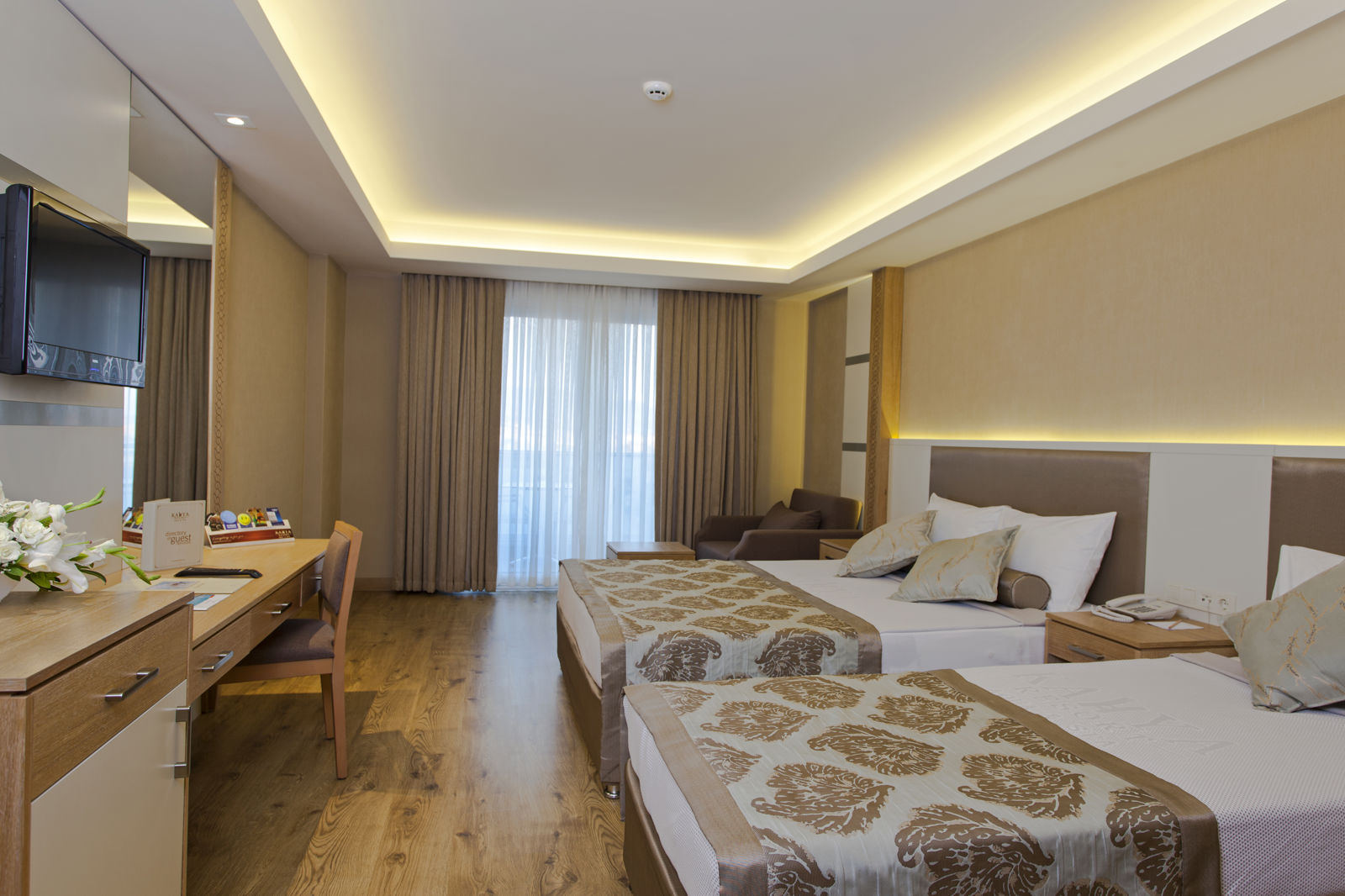 Direct naar: * Ligging () * Faciliteiten () * Restaurants&bars () * Zwembaden () * Hotelkamers () * Activiteiten&ontspanning () * Kinderfaciliteiten () * Verzorging () Ligging Kahya Resort Aqua&SPA * Op ca. 50 meter van het privéstrand, te bereiken via een tunnel * Centrum van Konalki op ca. 2 kilometer * Alanya ligt op ca. 15 kilometer * Bushalte op ca. 100 meter * Winkels op ca. 800 meter * Restaurants en bars op ca. 2 kilometer Faciliteiten * 2 gebouwen met 6 verdiepingen * 6 liften * 447 kamers *24-uursreceptie * Lobby * Bagageruimte * Tuin * Wifi* * Roomservice* * Winkeltje en minimarkt* * Wasservice* * Doktersservice* * Kapsalon* * Privé parkeergelegenheid *Tegen betaling Restaurants&bars * 1 buffetrestaurant * 2à-la-carterestaurants (vooraf reserveren) * 6 bars Zwembaden * 3 buitenzwembaden * 2 buitenzwembaden met glijbanen (op vaste tijden geopend) * Zonneterras * Privéstrand * Ligbedden, matrasjes en parasols gratis (zwembad en strand) * Gratis badhanddoekenservice (zwembad en strand,wissel 1 x per dag) Hotelkamers * Standaardkamer zijzeezicht (1-4 personen) * Ca. 34 m² * Telefoon* * Airconditioning * Televisie * Minibar (gevuld met water) * Kluisje* * Douche * Toilet * Föhn * Balkon met zitje * Tegen een meerprijs boekbaar met zeezicht (2-4 personen) * De voordeelkamer (2-4 personen) kan qua grootte, ligging, uitzicht en faciliteiten afwijken van de Standaardkamer *Tegen betaling * Familiekamer zijzeezicht (3-4 personen) * Ca. 36 m² * Bestaat uit 2 ruimtes * Dezelfde faciliteiten als de Standaardkamer * Tegen een meerprijs te boeken met zeezicht Activiteiten&ontspanning * Fitness * Aerobics * Boogschieten * Beachvolleybal * Volleybal * Boccia * Darts * Biljart* * Tafeltennis * Gameroom* * Watersporten aan het strand* * Turks bad * Sauna*/li>* Bubbelbad* * Massages en behandelingen* * 6x per week entertainment * 6 avonden per week shows * Live muziek 1x per week *Tegen betaling Kinderfaciliteiten * 2 kinderzwembaden met glijbaantjes * Miniclub (4-12 jaar) 6 dagen per week * Speeltuin * Minidisco 6 avonden per week * Kinderentertainment 6 dagen per week * Babybedjes (op aanvraag en op basis van beschikbaarheid) Verzorging Zomer: Kahya Resort Aqua&SPA * Verblijf o.b.v. Ultra All Inclusive: * Ontbijt in buffetvorm (07.00-10.00 uur) * Laat ontbijt in buffetvorm (10.00-10.30 uur) * Lunch in buffetvorm (12.30-14.00 uur) * Diner in buffetvorm (19.00-21.00 uur) * Diverse snacks (11.30-16.00 uur) * Koffie/thee en koekjes (15.00-18.00 uur) * IJs (15.00-16.00 uur) * Middernachtsnack (22.30-06.00 uur) * Tijdens je verblijf mag je 1xà-la-carte dineren (vooraf reserveren) * Geselecteerde lokale (non-)alcoholische dranken 24 uur per dag * Tegen betaling: vruchtensappen, geselecteerde import drankjes bij de lobby bar, roomservice, drankjes in de disco en import drankjes