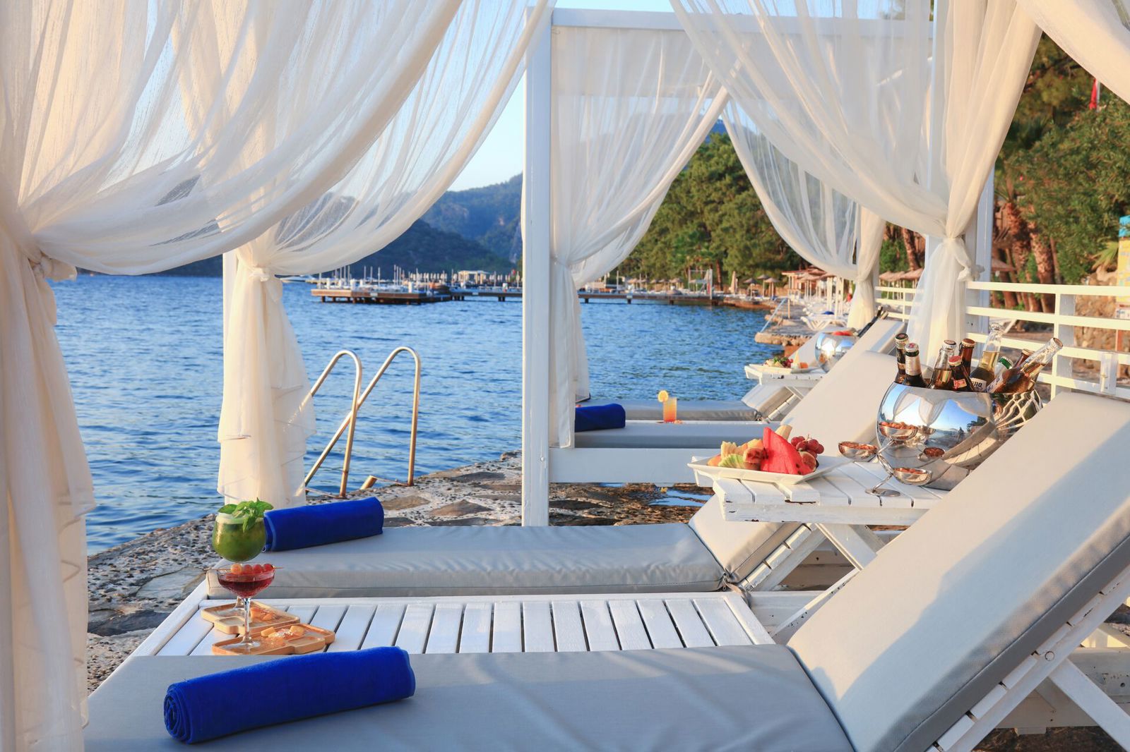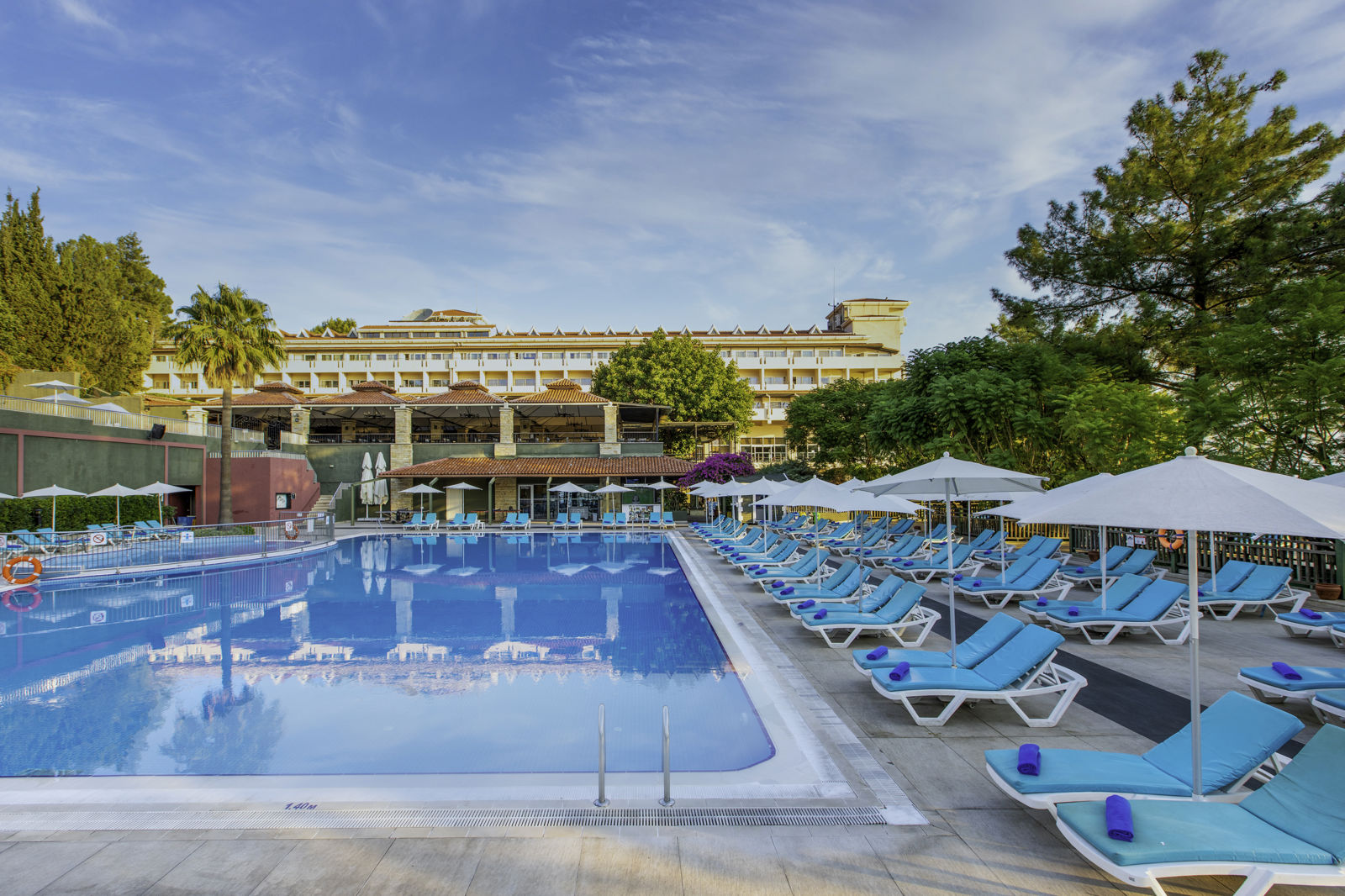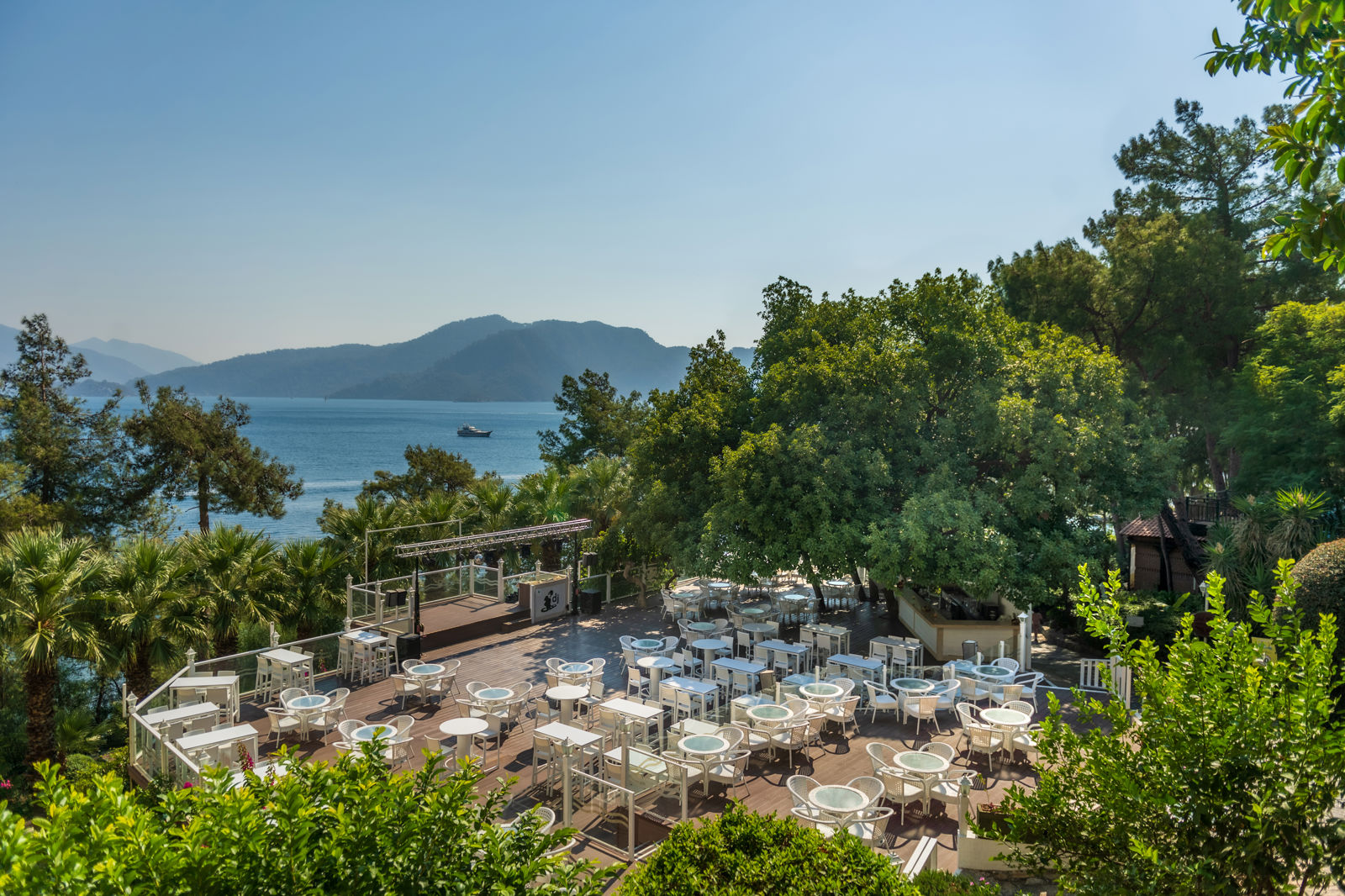 Direct naar: * Ligging () * Faciliteiten () * Restaurants&bars () * Zwembaden () * Hotelkamers () * Activiteiten&ontspanning () * Kinderfaciliteiten () * Verzorging () Ligging Labranda Mares Marmaris Hotel * Direct aan het strand en aan de promenade * Centrum van Icmeler op ca. 3 kilometer * Ca. 6 kilometer van het centrum van Marmaris * Bushalte op ongeveer 200 meter Faciliteiten * Hoofdgebouw en bijgebouwen in bungalowstijl, bestaande uit maximaal 5 verdiepingen * 5 liften, alleen in het hoofdgebouw aanwezig * 441 kamers * 24-uursreceptie * Lobby * Bagageruimte * Tuin * Wifi * Roomservice* * Winkeltjes en minimarkt* * Wasservice* * Doktersservice* * Kapsalon* * Privé parkeergelegenheid *Tegen betaling Restaurants&bars * 1 buffetrestaurant * 5à-la-carterestaurants (vooraf reserveren) * 6 bars Zwembaden * 2 buitenzwembaden waarvan 1 met glijbanen (op vaste tijden geopend) * 1 kinderbad * Zonneterras * Privéstrand * Ligbedden, matrasjes en parasols gratis (zwembad en strand) * Gratis badhanddoekenservice (zwembad en strand) Hotelkamers * Standaardkamer hoofdgebouw landzicht (1-3 personen) * Ca. 28 m² * Gelegen in het hoofdresort * Telefoon* * Airconditioning * Televisie * Minibar * Kluisje * Koffie-/theezetfaciliteiten * Wifi * Douche * Toilet * Föhn * Slippers * Balkon met zitje* Landzicht * Tegen een meerprijs boekbaar met zeezicht * Tevens boekbaar als kindvriendelijke kamer *Tegen betaling * Voordeelkamer (1-2 personen) * Kan qua ligging, faciliteiten en groote afwijken van de Standaardkamer * Bungalow tuinzicht (1-2 personen) * Ca. 30 m² * Gelegenin de tuin * Dezelfde faciliteiten als de standaardkamer landzicht * Tevens boekbaar als kindvriendelijke kamer * Superiorkamer zijzeezicht (1-2 personen) * Ca. 35 m² * Zijzeezicht * Dezelfde faciliteiten als de standaardkamer landzicht * Familiekamer Bungalow tuinzicht (3-4 personen) * Ca. 40 m² * Gelegen in de tuin * 2 slaapkamers * Inloopdouche * Dezelfde faciliteiten als de standaardkamer landzicht * Familiekamer superior (2-5 personen) * Ca. 45 m² * Woonkamer * 2 slaapkamers * Inloopdouche * Dezelfde faciliteiten als de standaardkamer landzicht Activiteiten&ontspanning * Fitness * Aerobics * Boogschieten * Boccia * Darts * (Mini)voetbal * Tafelvoetbal * Biljart * Tafeltennis * Tennis (verlichting en materiaal tegen betaling) * Watersporten aan het strand* * Turks bad * Sauna * Massages en behandelingen* * Dagelijks entertainment * 3 avonden per week live muziek *Tegen betaling Kinderfaciliteiten * 1 kinderzwembad * Miniclub (4-12 jaar) * Speeltuin * Kinderentertainment * Babybedjes Verzorging Zomer: Labranda Mares Marmaris Hotel * Verblijf o.b.v. All Inclusive: * Ontbijt in buffetvorm (07.00-10.00 uur) * Laat ontbijt in buffetvorm (10.00-10.30 uur) * Lunch in buffetvorm (12.00-14.00 uur) * Diner in buffetvorm (19.00-21.30 uur) * Diverse snacks (12.00-16.00 uur) * Koffie/thee en koekjes (24/7) * IJs (tijdens lunch en diner) * Middernachtsnack (00.00-00.30 uur) * Geselecteerde lokale (non-)alcoholische dranken (24/7) * Tegen betaling: import drankjes, roomservice, consumpties in de Cocobar en Capribar, alcoholische dranken in deà-la-carterestaurants, het vis à-la-carterestaurant (vooraf reserveren)