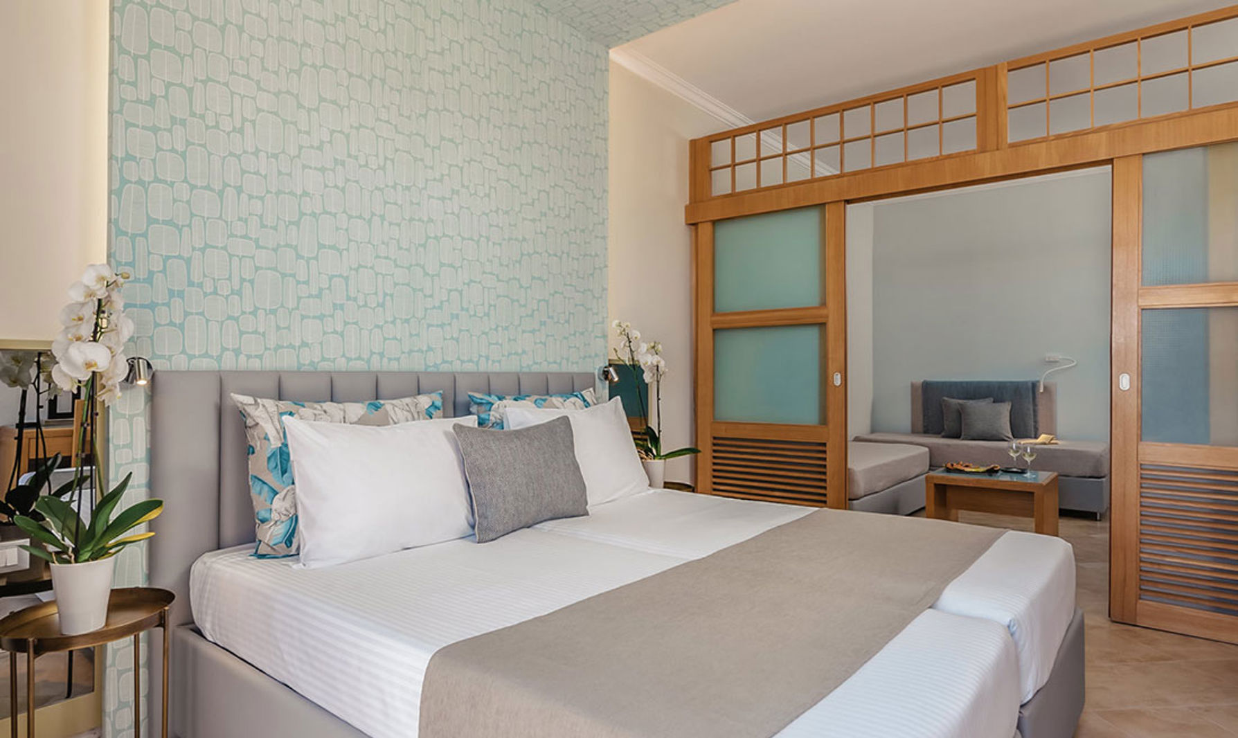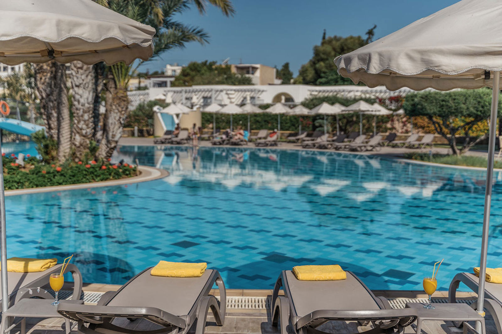 Direct naar: * Ligging () * Faciliteiten () * Restaurants&bars () * Zwembaden () * Hotelkamers () * Activiteiten&ontspanning () * Kinderfaciliteiten () * Verzorging () Ligging Lindos Imperial Resort * Direct aan het strand * Op ca. 1 kilometer van het centrum van Kiotari * Bushalte voor het hotel * Winkels, restaurants en bars op ca. 1 kilometer * Centrum van Lardos op ca. 3,5 kilometer * Op ca. 8 kilometer van het centrum van Lindos * Rhodos-Stad op ca. 50 kilometer Faciliteiten * 11 gebouwen met maximaal 2 verdiepingen * In elk gebouw is een lift aanwezig * 527 kamers * 24-uursreceptie * Lobby * Bagageruimte * Tuin * Wifi in de openbare ruimtes * Roomservice* * Winkeltjes en minimarkt* * Wasservice* * Doktersservice* (op aanvraag) * Kapsalon* * Openbare parkeergelegenheid *Tegen betaling Restaurants&bars * 1 buffetrestaurant * 5à-la-carterestaurants (vooraf reserveren) * 1 specialiteitenrestaurant * 5 bars Zwembaden * 2 buitenzwembaden * 1 buitenzwembad met 6 glijbanen (op vaste tijden geopend) * 1 binnenzwembad * Zonneterras * Ligbedden en parasols gratis (zwembad en strand) * Badhanddoekenservice (metborg) Hotelkamers * Superiorkamer tuinzicht (1-3 personen) * Ca. 27 m² * Telefoon* * Airconditioning * Televisie * Minibar* * Kluisje * Koffie-/theezetfaciliteiten * Wifi * Bad/douche * Toilet * Föhn * Slippers * Balkon of terras met zitje * Tegen een meerprijs boekbaar met zeezicht * De voordeelkamer (2 personen) kan qua grootte, ligging, uitzicht en faciliteiten afwijken van de Superiorkamer tuinzicht *Tegen betaling * Standaardkamer privé zwembad en tuinzicht (2-3 personen) * Ca. 27 m² * Dezelfde faciliteiten als de Superiorkamer tuinzicht* Terras met zitje en privé zwembad * Familiekamer tuinzicht (2-4 personen) * Ca. 30 m² * Bestaat uit een slaapkamer met een 2-persoonsbed en een slaapkamer met slaapbanken * Dezelfde faciliteiten als de Superiorkamer tuinzicht * Tegen een meerprijs boekbaar met zeezicht of met tuinzicht en privézwembad * Familiesuite tuinzicht (2-4 personen) * Ca. 33 m² * Bestaat uit een slaapkamer met een 2-persoonsbed en een slaapkamer met slaapbanken * Dezelfde faciliteiten als de Superiorkamer tuinzicht * Tegen een meerprijs boekbaar met zeezicht of met tuinzicht en privézwembad * Familiesuite tuinzicht (2-4 personen) * Ca. 33 m² * Bestaat uit een slaapkamer met een 2-persoonsbed en een slaapkamer met slaapbanken * Dezelfde faciliteiten als de Superiorkamer tuinzicht * Tegen een meerprijs boekbaar met zeezicht of met tuinzicht en privézwembad * Suite tuinzicht (2-3 personen) * Ca. 35 m² * Bestaat uit een slaapkamer met een 2-persoonsbed en een slaapkamer met slaapbanken * Dezelfde faciliteiten als de Superiorkamer tuinzicht * Suite privé zwembad en tuinzicht (2-3 personen) * Ca. 35 m² * Bestaat uit een slaapkamer met een 2-persoonsbed en een slaapkamer met slaapbanken * Dezelfde faciliteiten als de Superiorkamer tuinzicht * Terras met zitje en privé zwembad * Suite met gedeeld zwembad en bubbelbad (2-3 personen) * Ca. 35 m² * Bestaat uit een slaapkamer met een 2-persoonsbed en een slaapkamer met slaapbanken *Dezelfde faciliteiten als de Superiorkamer tuinzicht * Terras met zitje en bubbelbad en direct toegang tot een gezamenlijk zwembad * Tegen een meerprijs boekbaar met privé zwembad en bubbelbad Activiteiten&ontspanning * Fitness * Aerobics * Yoga * Beachvolleybal * Boccia * Darts * Voetbal * Biljart* * Tafeltennis * Tennis * Gameroom* * Watersporten aan het strand* * Turks bad * Sauna * Bubbelbad * Massages en behandelingen* * In het hoogseizoen 6x per week entertainment *Tegen betaling Kinderfaciliteiten * 1 kinderzwembad * 1 kinderzwembad met glijbaantjes (op vaste tijden) * Miniclub 6x per week (4-12 jaar) * Teenageclub 6x per week van juni t/m september (12-16 jaar) * Speeltuin * Minidisco 6x per week * Babybedjes (op aanvraag en op basis van beschikbaarheid) * Babysitservice op aanvraag en tegen betaling Verzorging Zomer: Lindos Imperial Resort * Verblijf o.b.v. All Inclusive: * Ontbijt in buffetvorm (07.00-10.30 uur) * Laat ontbijt in buffetvorm (10.30-11.00 uur) * Lunch in buffetvorm (12.30-14.30 uur) * Diner in buffetvorm (18.30-21.30 uur) * Diverse snacks (12.00-17.00 uur) * Koffie/thee en koekjes (16.00-17.00 uur) * IJs (op vaste tijden) * Tijdens je verblijf van minimaal 7 dagen mag je 3xà-la-carte dineren (vooraf reserveren) * Geselecteerde lokale (non-)alcoholische dranken (10.00-00.00 uur) * Tegen betaling: alle consumpties na 00.00 uur, import drankjes en roomservice Het hotel hanteert een dresscode: voor heren is een lange broek vereist tijdens de maaltijden