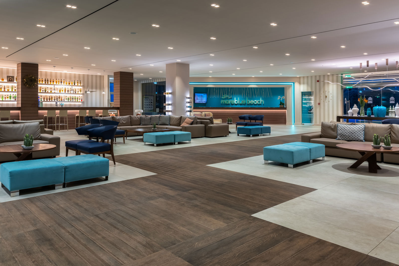 Direct naar: * Ligging () * Faciliteiten () * Restaurants&Bars () * Hotelkamers () * Sport&Ontspanning () * Kinderfaciliteiten () * Zwembaden&Strand () * Verzorging () Ligging: Mareblue Beach * Ca. 200 meter van het openbare zandstrand * Ca. 4 kilometer van het centrum van Acharavi * Ca. 40 kilometer van Corfu Airport * Winkels op ca. 100 meter * Shuttleservice tegen betaling naar Acharavi, Kassiopi, Corfu-Stad en Paleokastritsa * Op loopafstand van een mooi natuurreservaat en lagune Faciliteiten * 18 gebouwen met maximaal 3 verdiepingen * De openbare ruimtes en de kamers zijn in gerenoveerd * 382 kamers * 1 lift * 24-uursreceptie * Wifi in de lobby en bij het zwembad * Bagageruimte * Lobby * Tuin * Minimarkt* * Doktersservice* * Wasservice* * Privé parkeerterrein *Tegen betaling Restaurants&bars * 1 buffetrestaurant * 1 pizzeriaà-la-carterestaurant (vooraf reserveren) * 1 à-la-carterestaurant (vooraf reserveren) * 3 bars Hotelkamers * Standaardkamer tuinzicht (1-3 personen) * Ca. 26 m² * Telefoon* * Airconditioning * Televisie * Koelkastje * Kluisje * Wifi * Koffie-/theezetfaciliteiten * Bad/douche * Toilet * Föhn * Balkon of terras met zitje * Tegen een meerprijs te boeken met zeezicht (2-3 personen) *Tegen betaling * Superiorkamer (2-3 personen) * Ca. 26-28 m² * Badkamer met douche, toilet en föhn * Dezelfde faciliteiten als de standaardkamer tuinzicht * Deluxe kamer tuinzicht (2-3 personen) * Ca. 28 m² * Dezelfde faciliteiten als de superiorkamer * Badjassen en slippers * Fles wijn op de kamer bij aankomst * Iedere dag 2 flessen water * Tegen een meerprijs te boeken met zeezicht * Quadkamer / ruime standaardkamer (2 volwassenen + 2 kinderen) * Ca. 30 m² * Dezelfde faciliteiten als de standaardkamer tuinzicht * Stapelbed voor de kinderen * Familiesuite (2-5 personen) * Ca. 50 m² * Bestaat uit een woon-/slaapkamer met een slaapbank en een aparte slaapkamer * Dezelfde faciliteiten als de standaardkamer tuinzicht* Fles wijn op de kamer bij aankomst * Iedere dag 2 flessen water * 2 toiletten Sport&Ontspanning * Fitness * Aqua aerobics * Yoga * Beachvolleybal * Darts * Voetbal * Boccia * Biljart* * Tafeltennis * Tennis (met borg) * Watersporten aan het strand* * Sauna* * Turks bad* * Massages en schoonheidsbehandelingen* * Dagelijks entertainment *Tegen betaling Kinderfaciliteiten * 1 kinderzwembad * Speeltuin * Minidisco * Miniclub (4-12 jaar) * Babybedje (op aanvraag) * Babysitservice op aanvraag en tegen betaling Zwembaden&Strand * 1 buitenzwembad * 1 relax buitenzwembad, alleen voor volwassenen * Zonneterras met gratis ligbedden en parasols * Badhanddoekenservice tegen betaling * Ligbedden en parasols op het strand zijn tegen betaling Verzorging Zomer: Mareblue Beach * Verblijf o.b.v. All Inclusive: * Ontbijt in buffetvorm (07.00-10.00 uur) * Laat ontbijt continentaal (10.00-10.30 uur) * Lunch in buffetvorm (12.30-14.30 uur) * Light Lunch pool bar (12.30-14.30 uur) * Diner in buffetvorm (19.00-21.30 uur) * Snacks (14.30-16.00 uur) * IJs (10.30-19.00 uur) * Tijdens je verblijf kun je 1 dineren in de 2à-la-carterestaurants (vooraf reserveren en weersafhankelijk) * Geselecteerde lokale alcoholische en alcoholvrije drankjes van 10.30 tot 23.00 uur * Tegen betaling: import drankjes, barista koffie, crepes (23.00-01.00) en alles na 23.00 uur * Let op: In alle restaurants geldt een dresscode. Voor de heren; een lange broek en voor de vrouwen; geen korte broeken, tops en zwemkleding