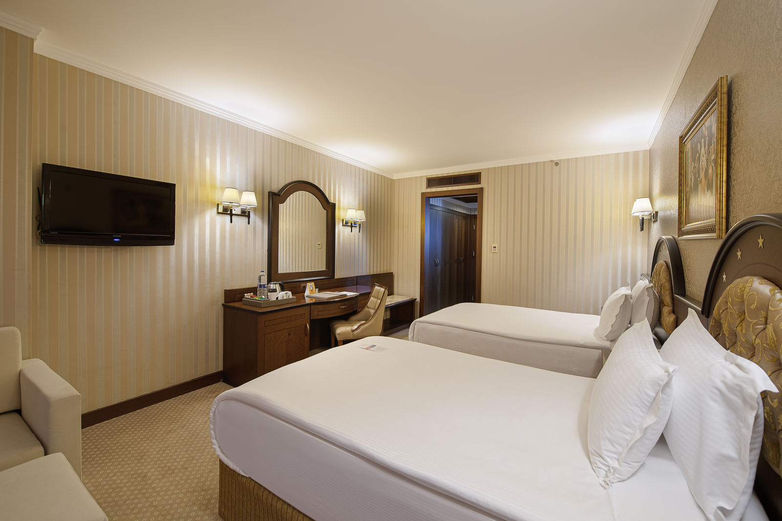 Direct naar: * Ligging () * Faciliteiten () * Restaurants&bars () * Zwembaden () * Hotelkamers () * Activiteiten&ontspanning () * Kinderfaciliteiten () * Verzorging () Ligging Megasaray Westbeach * Ca. 100 meter van het privé kiezelstrand (gescheiden door een weg) * Dichtstbijzijnde restaurants en bars op ca. 500 meter * Bushalte op ca. 1 kilometer * Centrum van Konyaalti op ca. 3 kilometer Faciliteiten * 1 gebouw met maximaal 9 verdiepingen * 4 liften * 334 kamers * 24-uursreceptie * Lobby * Bagageruimte * Wifi in de openbare ruimtes (gratis) * Roomservice* * Winkeltjes en minimarkt* * Wasservice* * Doktersservice* * Kapsalon* * Openbare en privé parkeergelegenheid *Tegen betaling Let op: * Van 5-10-2023 t/m 30-10-2023 wordt de wc in de lobby gerenoveerd. * Op 17,18&19 december 2023 zal het hoofdrestaurant gerestaureerd worden. Het eten zal plaatsvinden in de Luna zaal. * Van 04-01-2024 t/m 30-01-2024 zullen de kamers op de 9e verdieping gerenoveerd worden. Restaurants&bars * 1 buffetrestaurant * 2à-la-carterestaurants * 3 bars Zwembaden * 2 buitenzwembaden * 1 binnenzwembad * Zonneterras * Privéstrand * Ligbedden, matrasjes en parasols gratis (zwembad en strand) * Gratis badhanddoekenservice (zwembad en strand) Hotelkamers * Deluxekamer landzicht (1-3 personen) * Ca. 34 m² * Telefoon* * Airconditioning * Televisie * Minibar * Kluisje * Koffie-/theezetfaciliteiten * Wifi * Bad met douche * Toilet * Föhn * Slippers * Frans balkon * Tegen een meerprijs boekbaar met zeezicht *Tegen betaling * Comfortkamer landzicht (2-3 personen)* Ca. 34 m² * Dezelfde faciliteiten als de deluxekamer landzicht * Tegen een meerprijs boekbaar met zeezicht * Superiorkamer corner zijzeezicht (2-4 personen) * Ca. 40 m² * Op een hoek gelegen met een magnifiek uitzicht * Dezelfde faciliteiten als de deluxekamer landzicht * Familiekamer (3-5 personen) * Ca. 44 m² * Bestaat uit 2 ruimtes * Zijzeezicht * Dezelfde faciliteiten als de deluxekamer landzicht * Suite met terras landzicht (2-3 personen) * Ca. 75 m² * Aparte woon- en slaapkamer * Terras * Dezelfde faciliteiten als de deluxekamer landzichtActiviteiten&ontspanning * Fitness * Aerobics * Darts * Biljart * Tafeltennis * Spa en wellnesscenter met: * Turks bad * Sauna * Bubbelbad* * Binnenzwembad * Massages en behandelingen* * Dagelijks entertainment * 2 x per week Live muziek * Dagelijks shows *Tegen betaling Kinderfaciliteiten * 2 kinderzwembaden * Miniclub (4-8 jaar, dagelijks) * Teenageclub (13-16 jaar, in het hoogseizoen) * Speeltuin * Minidisco * Babybedjes (gratis) * Babysitservice Verzorging: Megasaray Westbeach * Verblijf o.b.v. Ultra All Inclusive: * Ontbijt in buffetvorm (07.00-10.00 uur) * Laat ontbijt in buffetvorm (10.00-11.00 uur) * Lunch in buffetvorm (13.00-14.30 uur) * Diner in buffetvorm (18.45-21.15uur) * Snacks (12.00-18.00 uur) * Koffie/thee en koekjes (10.00-18.00 uur) * IJs (op vastgestelde tijden) * Middernachtsnack (00.00-02.00 uur) * Geselecteerde lokale (non-)alcoholische dranken (24/7) * Tegen betaling: import drankjes, energiedrankjes, roomservice en dineren in de deà-la-carterestaurants