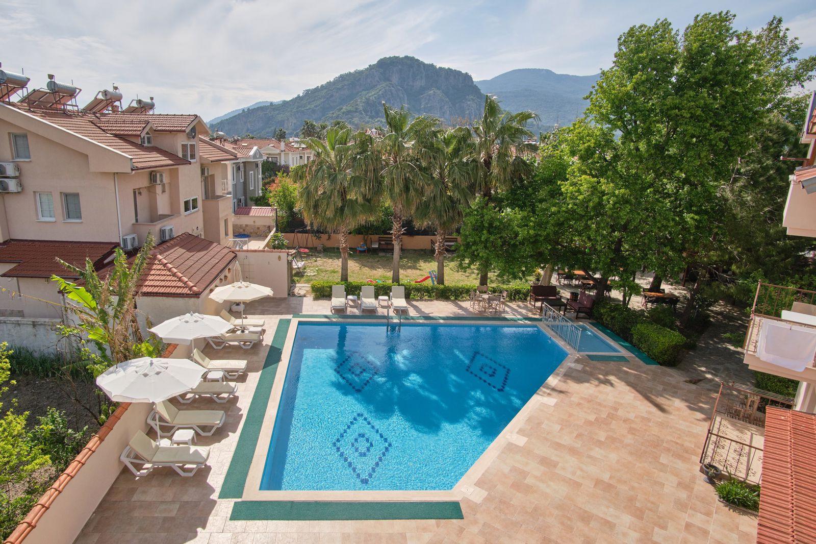 Direct naar: * Ligging () * Faciliteiten () * Restaurants&Bars () * Appartementen () * Sport&Ontspanning () * Zwembaden&Strand () * Verzorging () * Ligging: Meryem Ana Aparthotel (voorheen Ali Baba Aparthotel) * Rustig gelegen en omringd door een prachtige landelijke omgeving * Op ca. 700 meter van Dalyan * Het strand (Turtle beach) op ca. 12 kilometer * Bushalte op ca. 200 meter * Winkels en restaurants op ca. 400 meter Faciliteiten * 1 gebouw met maximaal 3 verdiepingen * Er is geen lift aanwezig * 9 kamers en appartementen * 24-uursreceptie * Bagageruimte * Lobby * Tuin * Gratis wifi in de openbare ruimtes * Wasservice* * Openbare parkeerplaatsen *Tegen betaling Restaurants&bars * 1 restaurant * 1 bar Appartementen * 2-kamerappartement (2-4 personen) * Ca. 40 m² * Bestaat uit een woon-/slaapkamer met slaapbank en een aparte slaapkamer * Airconditioning * Televisie * Kitchenette met 2-pits kookplaat, broodrooster en oven * Koelkastje * Kluisje * Koffie-/theezetfaciliteiten * Wasmachine * Wifi * Douche * Toilet * Föhn * Balkon met zitje * 3-kamerappartement (2-6 personen) * Ca. 60 m² * Bestaat uit een woon-/slaapkamer met slaapbank en 2 aparte slaapkamers * Dezelfde faciliteiten als het 2-kamerappartement * Kitchenette met 4-pits kookplaat, broodrooster, oven en een wasmachine * Balkon of terras met zitjeSport&Ontspanning * Heerlijk wandelen in de omgeving * Met een bootje* naar het strand *Tegen betaling Zwembaden&Strand * 1 buitenzwembad * 1 klein kinderbad * Zonneterras met gratis ligbedden, matrasjes en parasols * Badhanddoekenservice met borg Verzorging Zomer : Meryem Ana Aparthotel (voorheen Ali Baba Aparthotel) * Verblijf o.b.v. Logies: * Tegen een meerprijs verblijf je o.b.v. Logies&Ontbijt: * Ontbijt in buffetvorm