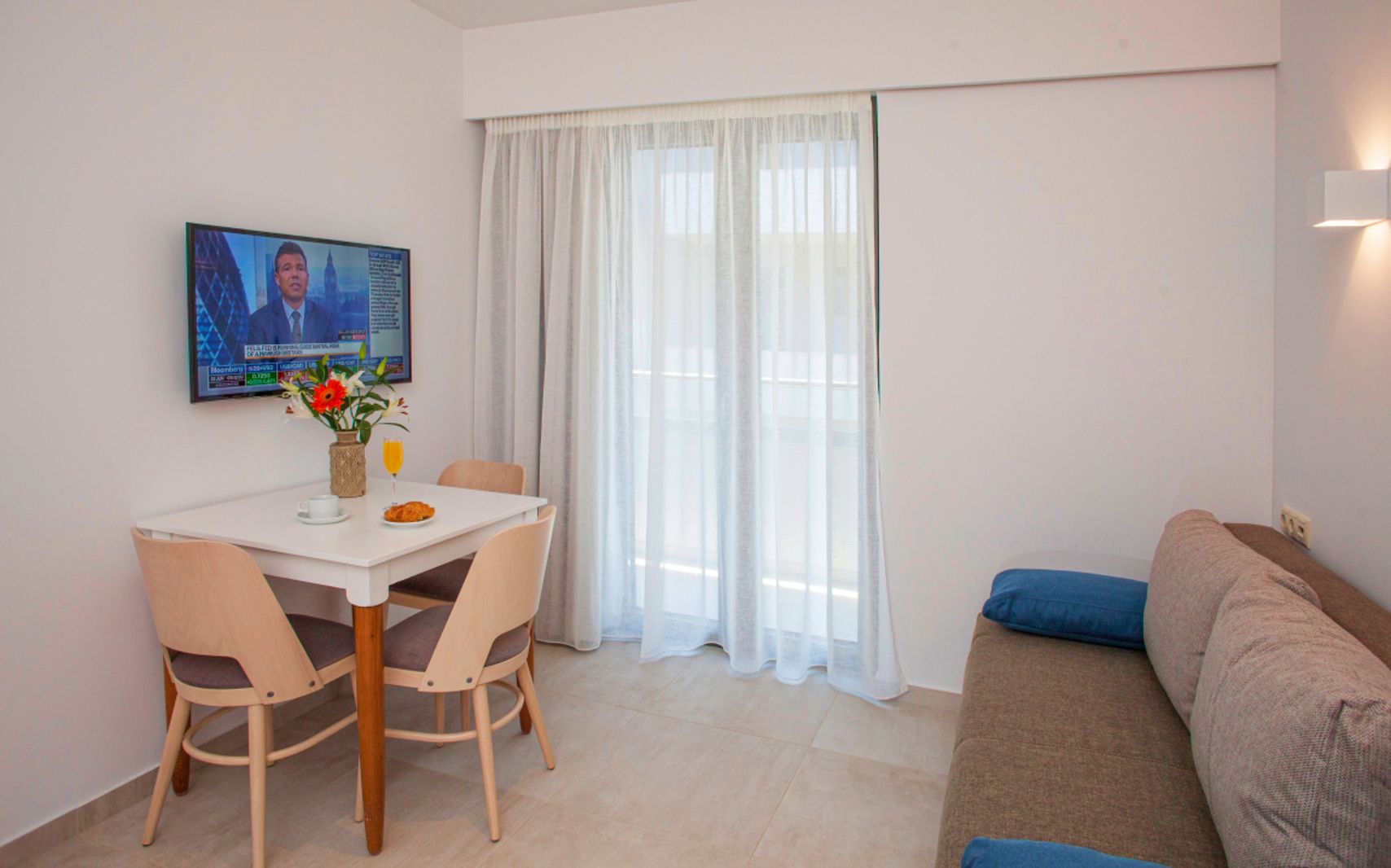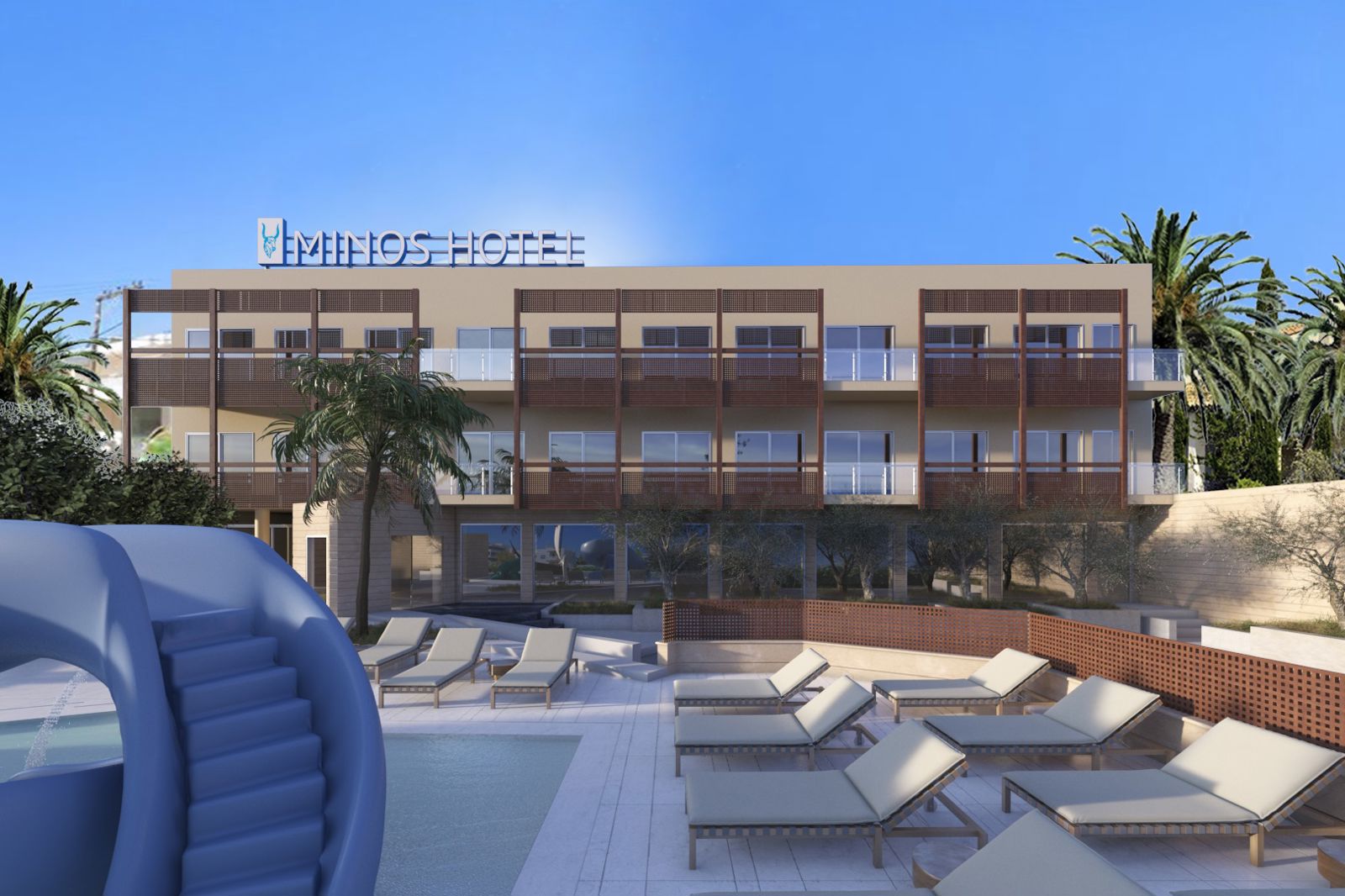 Direct naar: * Ligging () * Faciliteiten () * Hotelkamers () * * Restaurants&Bars () * Sport&Ontspanning () * Zwembaden () * Verzorging () Ligging: Minos Aparthotel * Gelegen in Rethymnon * Op ca. 200 meter van het strand * Op ca. 1 kilometer van het oude centrum * Bushalte op ca. 50 meter Faciliteiten * 38 kamers, verdeeld over 3 etages * 2 liften aanwezig * 24-uursreceptie * Kluisjes* * Bagageruimte * Tuin * Gratis wifi in openbare ruimtes * Wasservice* * Privé parkeerterrein* (beperkte aantal plaatsen) * Doktersservice* * Roomservice* *Tegen betaling Hotelkamers * Deluxe kamer (2 personen) * Modern ingericht * Telefoon* * Airconditioning (gecentraliseerd) * Satelliettelevisie * Koffie-/theezetfaciliteiten * Minibar* * Kluisje* Wifi * Douche * Badjas en slippers * Toilet * Föhn * Balkon met zitje * Tablet (op aanvraag, met borg) * Kussenmenu * Muggennet op het balkon * Fles wijn, mineraal water en fruit bij aankomst *Tegen betaling * Studio Deluxe (2 personen) * Kitchenette * Dezelfde faciliteiten als Deluxe kamer * 2-kamersuite (2-3 personen) * Ca. 35 m² * Bestaat uit een woon-/slaapkamer met slaapbank en een aparte slaapkamer * Klamboe * Donsdekbedden * Kitchenette * Minibar (softdrinks gratis) * Vers fruit bij aankomst * Fles mousserende wijn en een fles bronwater bij aankomst * Dezelfde faciliteiten als de deluxekamer * 2-kamerappartement Superior (2-4 personen) * Ca. 40 m² * Bestaat uit een woon-/slaapkamer met slaapbank of logeerbed, een slaapkamer en een keuken * Klamboe * Donsdekbedden * Kitchenette * Minibar (softdrinks gratis) *Vers fruit bij aankomst * Fles mousserende wijn en een fles bronwater bij aankomst * Dezelfde faciliteiten als de deluxekamer Restaurants&bars * 1 buffetrestaurant * 1à-la-carterestaurant voor lunch en diner * 2 bars (poolbar en lobbybar) * Maaltijden zijn te verkrijgen in naastgelegen Minos Hotel * Voor het diner geldt een dresscode * In het naastgelegen Minos Hotel zijn ook thema-avonden Sport&Ontspanning * Aquarobics * Schaken * Bibliotheek * Fietsverhuur * Fitness (outdoor) * Darts * Boccia * Tafeltennis * Biljart* * Duikcenter* * Watersport aan het strand* * Massages en schooneidsbehandelingen* * Sommige avonden liveshows en muziek *Tegen betaling Zwembaden * 2 buitenzwembaden * Spiksplinternieuw kinderwaterpark‘Poseidon Junior Water Park’: gelegen op het terrein Minos Hotel én Minos Aparthotel voor kinderen van 3 tot 12 jaar, open vanaf 15 april en gratis toegang voor gasten van deze accommodatie. Dit waterpark is bovendien het enige waterpark in Rethymnon, dus dé plek voor een heerlijke vakantie met de kinderen. * Zonneterras met gratis ligbedden en parasols * Badhanddoekenservice met borg Verzorging Zomer: Minos Aparthotel * Verblijf o.b.v. Logies&ontbijt * Tegen een meerprijs verblijf je o.b.v. Halfpension: Ontbijt (vroeg ontbijt is mogelijk, vooraf reserveren) en diner * Tegen een meerprijs verblijf je o.b.v. All Inclusive: * Vroeg ontbijt in buffetvorm (05.30-07.30 uur, vooraf reserveren verplicht) * Ontbijt in buffetvorm (07.30-10.30 uur) * Lunch in buffetvorm (12.30-16.00 uur) * Diner in buffetvorm (18.30-21.30 uur) * Snacks, koffie/thee en ijs (10.30-17.00 uur) * Lokale (non-) alcoholische dranken (10.30-01.00 uur) * Tegen betaling: roomservice