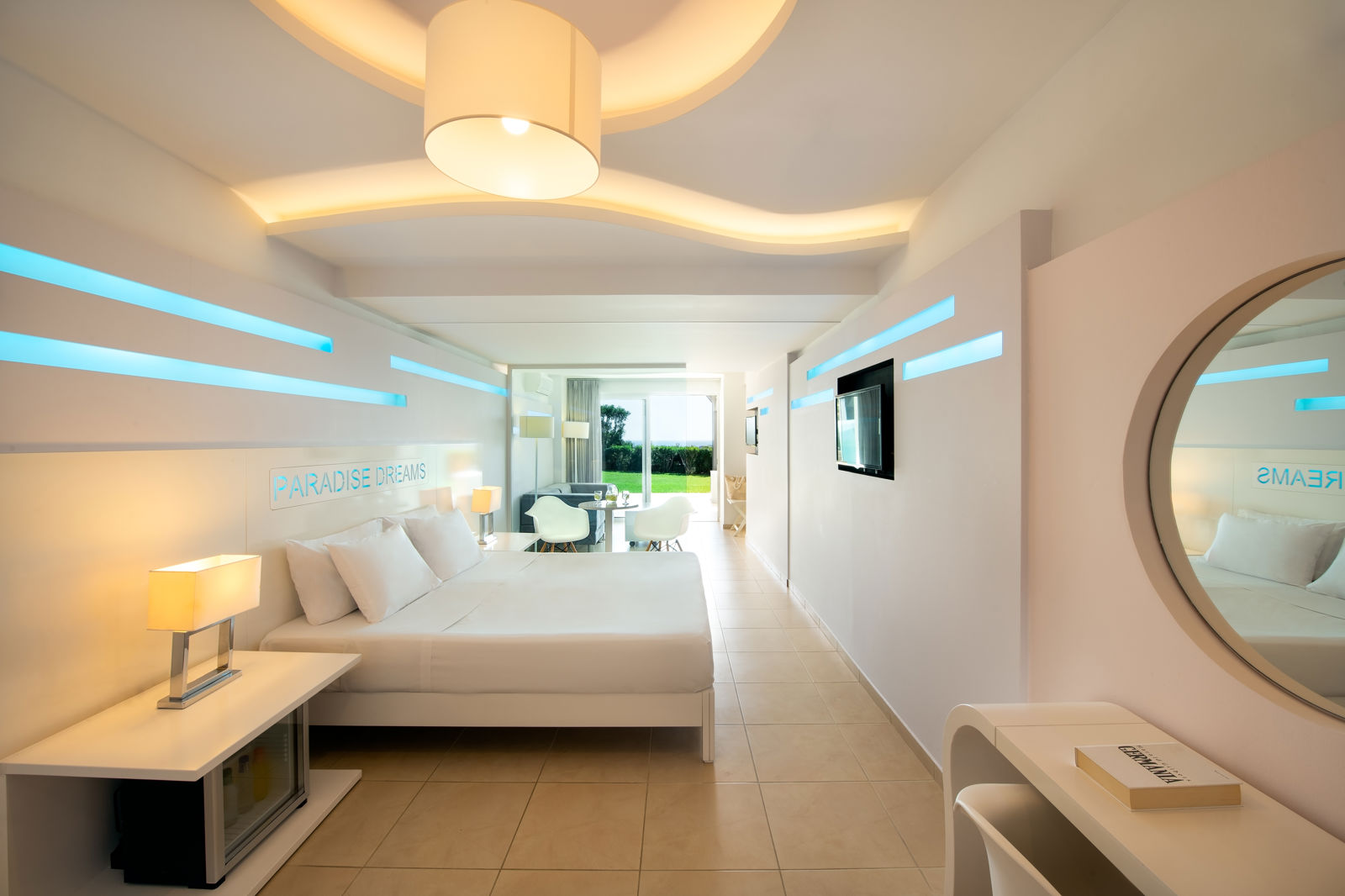 Direct naar: * Ligging () * Faciliteiten () * Restaurants&bars () * Zwembaden () * Hotelkamers () * Activiteiten&ontspanning () * Kinderfaciliteiten () * Verzorging () Ligging Mitsis Bali Paradise * Op ca. 200 meter van het strand * Op ca. 1 kilometer van het centrum van Bali * Winkels en restaurants op loopafstand * Bushalte op ca. 1 kilometer * Shuttleservice naar Heraklion en Agios Nikolaos (tegen betaling) Faciliteiten * Meerdere gebouwen met maximaal 2 verdiepingen * Er zijn geen liften aanwezig * 238 kamers * 24-uursreceptie * Lobby *Tuin * Wifi * Winkeltje* * Wasservice* * Privé parkeergelegenheid *Tegen betaling Restaurants&bars * 1 buffetrestaurant * 1à-la-carterestaurant (vooraf reserveren) * 2 bars Zwembaden * 2 buitenzwembaden * 1 buitenzwembad met glijbanen (op vaste tijden geopend) * Zonneterras * Privéstrand * Ligbedden en parasols gratis (zwembad en strand) * Badhanddoekenservice (tegen betaling) Hotelkamers * Standaardkamer tuinzicht (1-3 personen) * Ca. 23 m² * Telefoon* * Airconditioning * Televisie * Koelkastje * Kluisje* * Wifi * Bad/douche * Toilet * Föhn * Balkon of terras met zitje * Tegen een meerprijs boekbaar met zijzeezicht (2-3 personen) of zeezicht (2-3 personen) *Tegenbetaling * Ruime standaardkamer tuinzicht (2-4 personen) * Ca. 29 m² * Bestaat uit 1 ruimte met extra bedden * Dezelfde faciliteiten als de standaardkamer tuinzicht * Familiekamer tuinzicht (2-4 personen) * Ca. 33 m² * Bestaat uit 1 ruimte met extra bedden * Dezelfde faciliteiten als de Standaardkamer tuinzicht Activiteiten&ontspanning * Beachvolleybal * Biljart* * Tennis * Minigolf * Duikcenter* * Turks bad* * Sauna* * Schoonheisbehandelingen* *Tegen betaling Kinderfaciliteiten * 1 kinderzwembad * Miniclub * Teenageclub in juli en augustus * Speeltuin Verzorging Zomer: Mitsis Bali Paradise * Verblijf o.b.v. All Inclusive: * Ontbijt in buffetvorm (07.00-10.00 uur) * Lunch in buffetvorm (12.30-14.30 uur) * Diner in buffetvorm (19.30-21.30 uur) * Diverse snacks (volgt zo snel mogelijk) * Geselecteerde lokale (non-)alcoholische dranken (volgt zo snel mogelijk) * Tegen betaling: import drankjes en hetà-la-carterestaurant (vooraf reserveren)