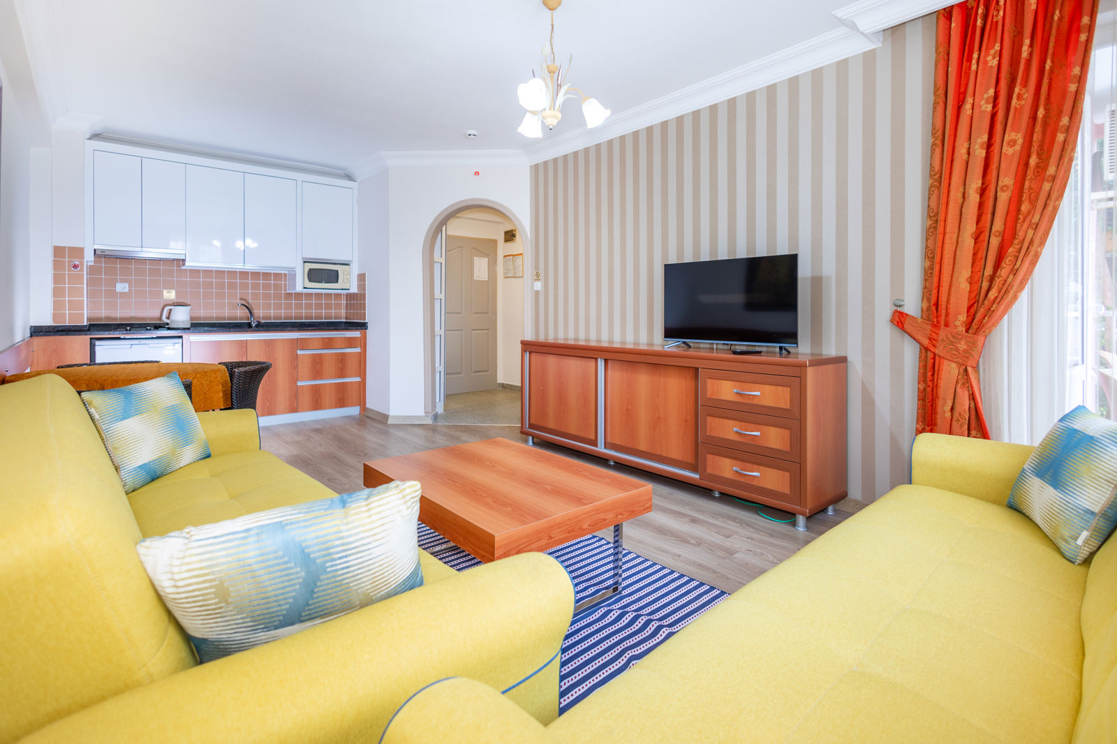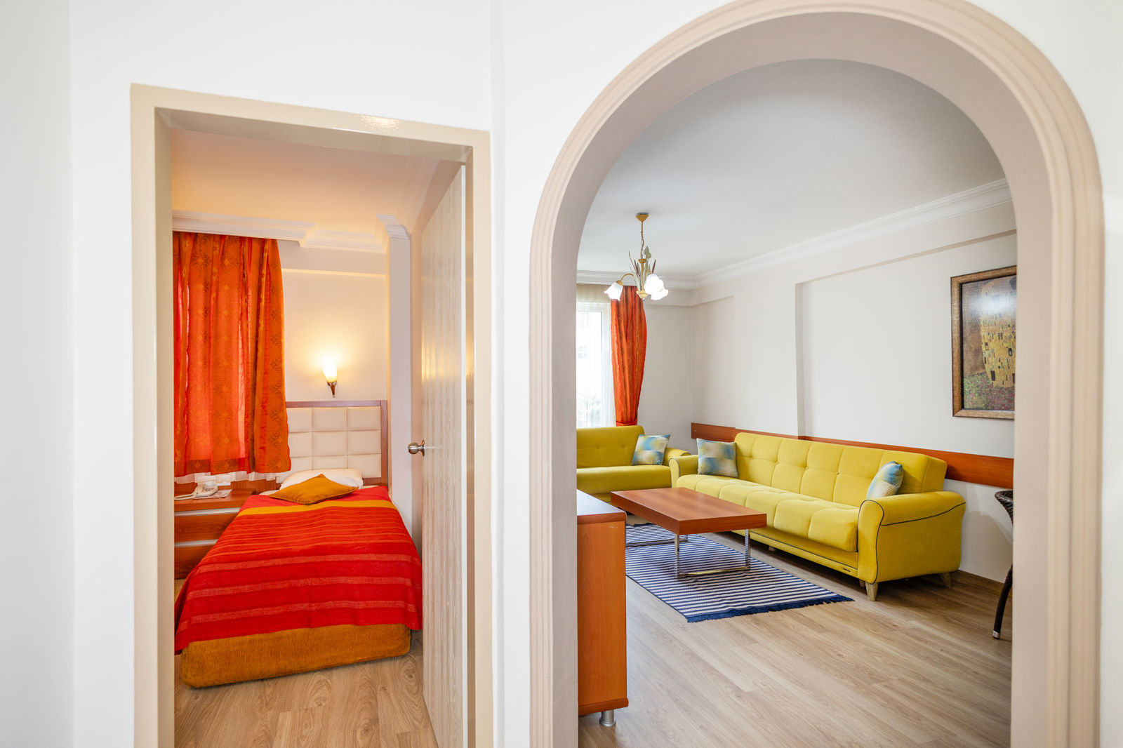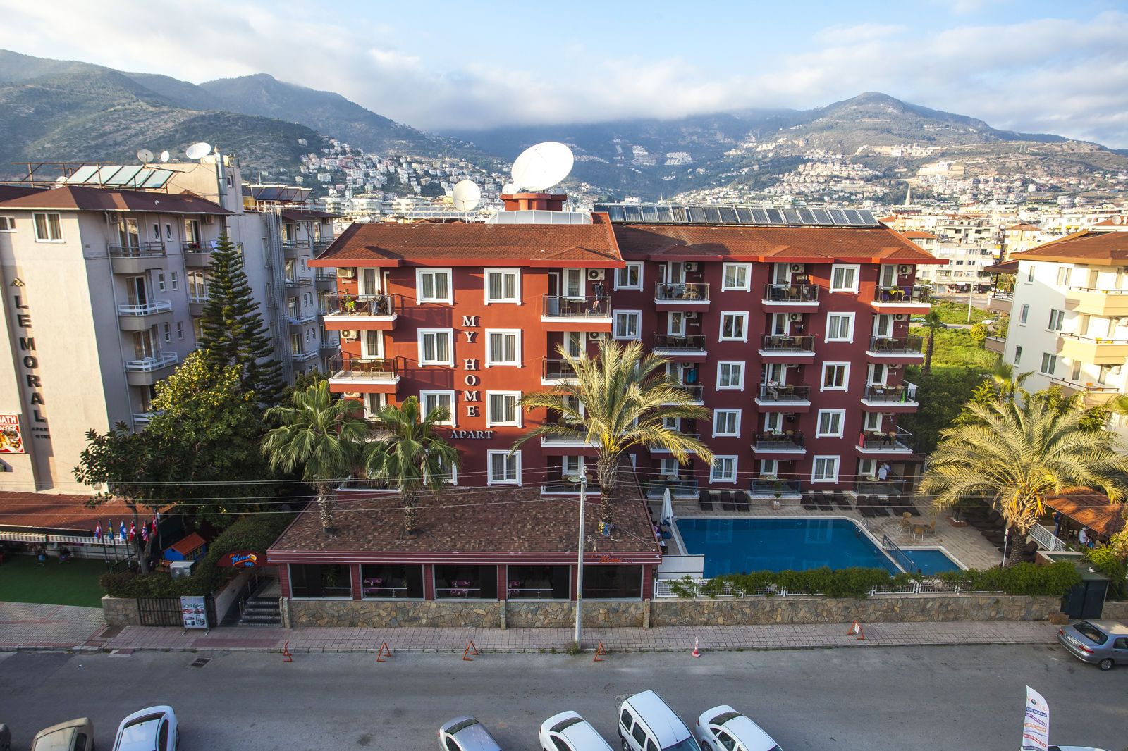Direct naar: * Ligging () * Faciliteiten () * Restaurants&Bars () * Hotelkamers () * Sport&Ontspanning () * Zwembaden&Strand () * Verzorging () * Ligging: My Home Appartementen * Gelegen in het centrum van Alanya * Ca. 250 meter van het Kleopatra strand * Bushalte op ca. 50 meter * Winkels, restaurants en bars op ca. 50 meter * Aquapark op ca. 200 meter * Diverse bezienswaardigheden binnen 1 kilometer afstand Faciliteiten* 1 gebouw met 4 verdiepingen * 1 lift * 46 appartementen * Lobby * Wifi in een aantal openbare ruimtes * Internetcafé* * Minimarkt* * Wasservice* * Doktersservice* *Tegen betaling Restaurants&bars * 1 restaurant * 1 bar Hotelkamers * 2-kamerappartement (1-4 personen) * Ca. 46 m² * Bestaat uit een woon-/slaapkamer met slaapbank en een aparte slaapkamer * Telefoon* * Airconditioning* * Televisie * Kluisje* * Wifi * Kitchenette * Koelkast * Koffiezetapparaat* * 2-pits kookplaat * Magnetron * Douche * Toilet * Föhn * Balkon of terras met zitje*Tegen betaling Sport&Ontspanning * Tafeltennis* * Fitnessruimte * Turks bad* * Sauna* * Massages* *Tegen betaling Zwembaden&Strand * 1 buitenzwembad * 1 kinderbad * Zonneterras met gratis ligbedden en parasols (zwembad) * Ligbedden, matrasjes en parasols tegen betaling (strand) Verzorging Zomer&Winter: My Home Appartementen * Verblijf o.b.v. Logies * Tegen een meerprijs verblijf je o.b.v. Logies&Ontbijt: * In de zomerperiode een ontbijtbuffet en in de winterperiodeà la carte service