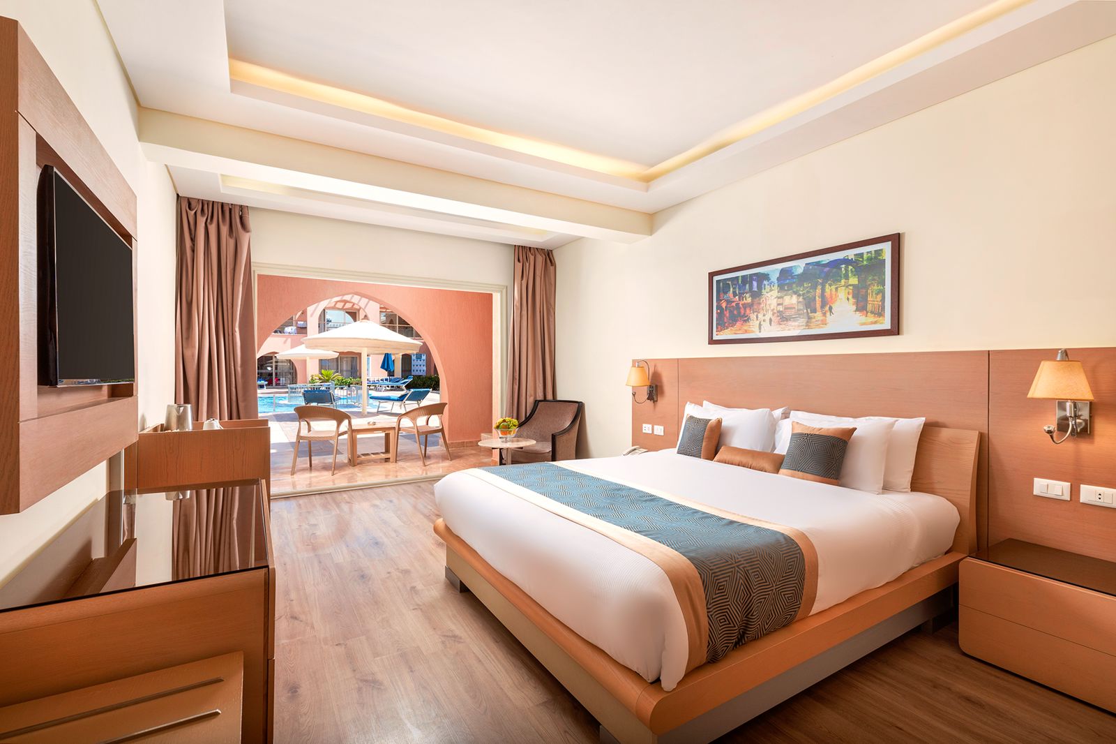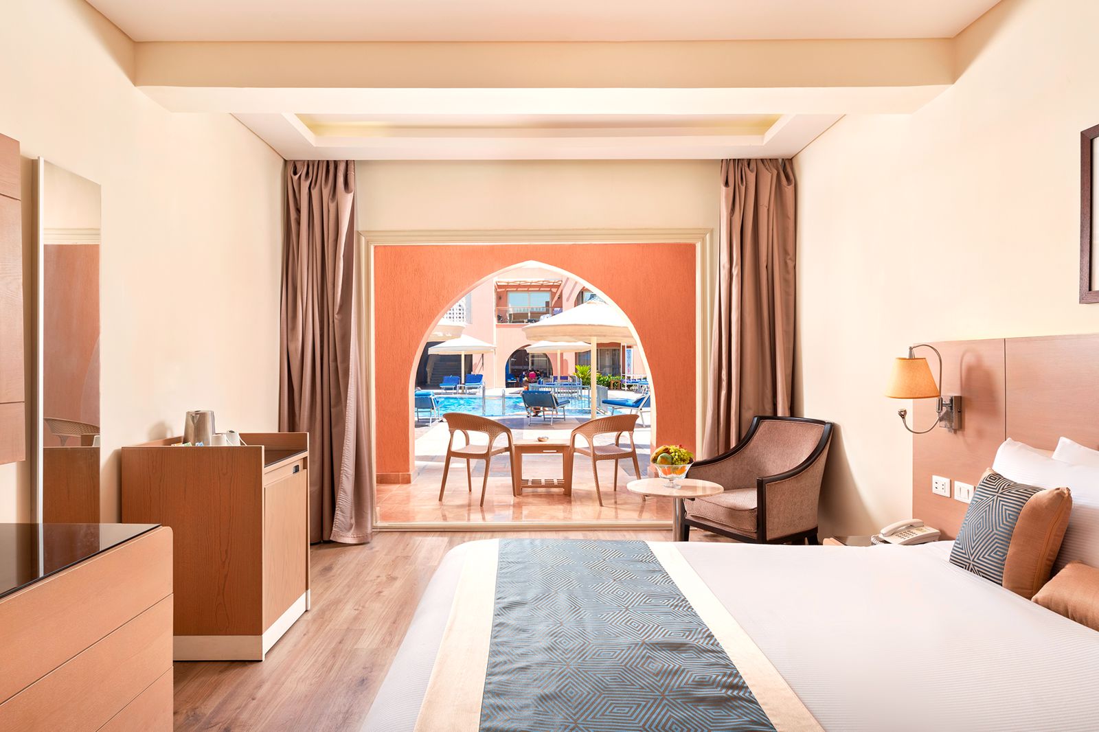 Winter Wanneer je tussen 01-11-2023 en 31-03-2024 in deze accommodatie verblijft, is onderstaande informatie van toepassing. * Ligging * Privéstrand op circa 900 meter * Zandstrand * Rotsstrand * Ligbedden met matrasjes gratis * Parasol gratis * Centrum van Hurghada op circa 18 kilometer * Winkelcentrum op circa 500 meter * Shuttleservice naar het strand gratis * Algemeen&faciliteiten * Kindvriendelijk complex * Authentiek * Meerdere gebouwen * Maximaal 2 verdiepingen * 544 kamers * Receptie * 24 uur per dag open * Lobby * Bagageruimte * Wifi in alle openbare ruimtes gratis * Winkel (minimarkt) * Wasservice tegen betaling * Medische service tegen betaling * Tuin * Privé parkeergelegenheid gratis * Restaurants&bars * 4 buffetrestaurants gratis voor all inclusive gasten * Themabuffetten * Snackbar gratis voor all inclusive gasten * 6 drinkgelegenheden * Zwembaden * Meerdere buitenzwembaden * Zoetwater * Een aantal van deze zwembaden is verwarmd * Buitenzwembad voor kinderen * Glijbaan * Terras * Ligbedden met matrasjes * Parasol * Badhanddoekenservice gratis * Activiteiten&ontspanning * Aerobics gratis * Beachvolleybal gratis * Biljart tegen betaling * Boccia gratis * Boogschieten gratis * Darts tegen betaling * Duikcentrum tegen betaling * Fitness gratis * Jetskiën tegen betaling * Midgetgolf gratis * Snorkelen tegen betaling * Tafeltennis gratis * Tennis tegen betaling * Voetbal gratis * Yoga gratis * Spafaciliteiten * Sauna tegen betaling * Hamam tegen betaling * Bubbelbad binnen tegen betaling * Massages tegen betaling * Schoonheidsbehandelingen tegen betaling * Animatie * 6 keer per week * Shows voor volwassenen * 6 keer per week * Livemuziek * Kinderfaciliteiten * Mini club (4-12 jaar) * Minidisco * 1 buitenspeeltuinen * Babybedje * Verzorging * All Inclusive * Ontbijt in buffetvorm (07:00-10:00 uur) * Laat ontbijt in buffetvorm (10:00-11:00 uur) * Lunch in buffetvorm (12:30-14:30 uur) * Diner in buffetvorm (18:00-21:00 uur) * Snacks (12:00-16:00 uur) * Koffie, thee&koekjes (15:00-17:00 uur) * IJs (10:00-16:00 uur) * Middernachtsnack (22:00-00:00 uur) * Selectie lokale (non-)alcoholische drankjes (10:00-00:00 uur) * Niet inbegrepen:. Geïmporteerde drankjes. ShishaHotelkamers * 2-persoonskamer Voordeel DE * Speciaal tarief * Locatie, formaat, uitzicht en/of faciliteiten kunnen afwijken ten opzichte van andere kamertypes * Airconditioning * Kluisje * Televisie * Telefoon tegen betaling * Eet- en drinkfaciliteiten * Koffie-en theefaciliteiten * Minibar. Gevuld * Badkamer met douche, toilet en föhn * Wifi * 2-persoonskamer Standaard Tuinzicht DZG * Oppervlakte circa 32 m² * Tuinzicht * Airconditioning * Kluisje * Televisie * Telefoon tegen betaling * Eet- en drinkfaciliteiten * Koffie- en theefaciliteiten * Minibar. Gevuld * Badkamer met douche, toilet en föhn * Wifi gratis * Balkon of terras (zitje) * 2-persoonskamer Standaard Zwembadzicht DZP * Oppervlakte circa 32 m² * Zwembadzicht * Airconditioning * Kluisje * Televisie * Telefoon tegen betaling * Eet- en drinkfaciliteiten * Koffie- en theefaciliteiten * Minibar. Gevuld * Badkamer met douche, toilet en föhn * Wifi * Balkon of terras (zitje) * Familiekamer F1 * Twee standaardkamers met tussendeur * Airconditioning * Kluisje * Televisie * Telefoon tegen betaling * Eet- en drinkfaciliteiten * Koffie- en theefaciliteiten * Minibar. Gevuld * Badkamer met douche, toilet en föhn * Wifi * Balkon of terras (zitje) * Familiekamer (2 Bedrooms) F2 * Zeezicht * Meerdere slaapkamers * Airconditioning * Kluisje * Televisie * Telefoon tegen betaling * Eet- en drinkfaciliteiten * Koffie- en theefaciliteiten* Minibar. Gevuld * Badkamer met douche, toilet en föhn * Wifi * Balkon of terras (zitje)