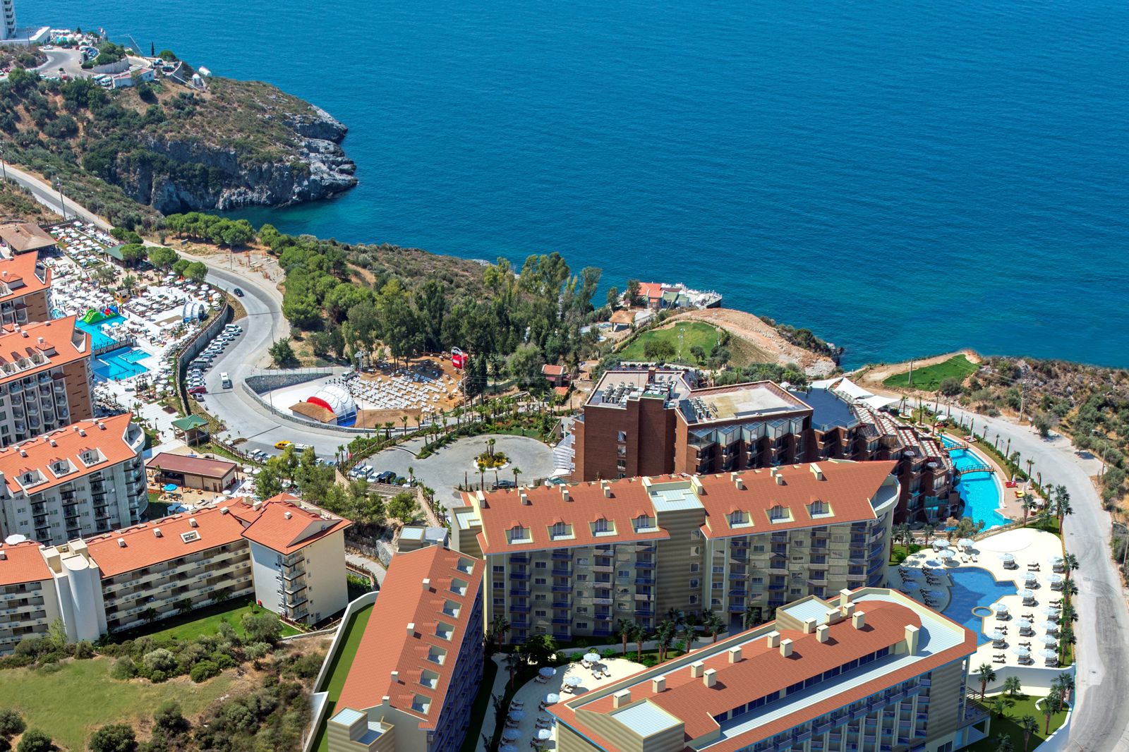 Ligging: Ramada Hotel&Suites in Kusadasi Ramada Hotel&Suites Kusadasi ligt op ongeveer 1,5 kilometer van het centrum van Kusadasi en op circa 1 kilometer van het strand. Het hotel biedt een gratis shuttleservice aan naar het strand. Het openbaar vervoer tref je op loopafstand. Faciliteiten: Ramada Hotel&Suites Kusadasi Ramada Hotel&Suites Kusadasi bestaat uit een hoofdgebouw en 3 bijgebouwen en telt 305 kamers. In de prachtige lobby met zitjes vind je de 24-uursreceptie. Er zijn in alle gebouwen liften aanwezig. De maaltijden worden geserveerd in het buffetrestaurant en drankjes zijn te verkrijgen bij de lobby bar en de snackbar (beide tegen betaling, half pension). Je kunt ook dineren inéén van de twee à-la-carterestaurants (vooraf reserveren en tegen betaling helf pension). In één à-la-carterestaurant mag je 1x gratis dineren bij een verblijf van minimaal 7 dagen. Het resort beschikt over 2 zwembaden waarvan 1 met glijbanen en een apart kinderbad. Rondom de zwembaden en op het strand kun je gratis gebruikmaken van de ligbedden en parasols. De badhanddoekenservice is gratis. Verder biedt Ramada Hotel&Suites Kusadasi roomservice, een wasservice, minimarkt en een doktersservice. In de openbare ruimtes kun je gratis gebruikmaken van wifi. Verder is er voor de kinderen beperkt entertainment, minidisco en een miniclub (4-12 jaar). Hotelkamer: De superiorkamers (1-3 personen, ca. 34 m²) in Ramada Hotel&Suites Kusadasi zijn ruim en verzorgd ingericht en beschikken over airconditioning, satelliettelevisie, minibar (gevuld met water en frisdrank), wifi (gratis), kluisje (tegen betaling), koffie-/theezetfaciliteiten, telefoon en een balkon met zitje. De badkamer is voorzien van een douche, toilet en föhn. De juniorsuite (max. 3 volw. + 1 kind, ca. 53 m²), bestaat uit een woon-/slaapkamer met slaapbank en een aparte slaapkamer. De juniorsuite beschikt over dezelfde faciliteiten als de superiorkamer. Je kunt kiezen voor een juniorsuite met landzicht of zijzeezicht. De familiekamer suite (4 personen, ca. 71 m²) bestaat uit 2 ruimtes en is groter dan de juniorsuite. Sport&Ontspanning: Tijdens je verblijf in Ramada Hotel&Suites Kusadasi kun je gratis gebruikmaken van tafeltennis, aerobics en fitness. De gameroom en watersporten aan het strand zijn tegen betaling. In het Spa&Wellness kun je heerlijk ontspannen in de sauna of het Turks bad. Massages en behandelingen zijn tegen betaling. Het animatieteam verzorgt alle dagen een leuk en gevarieerd animatieprogramma. Verzorging Zomer : Ramada Hotel&Suites Kusadasi Je verblijft in het Ramada Hotel&Suites op basis van All Inclusive: ontbijt (07.00-10.00), laat ontbijt (10.00-11.00), lunch (12.30-14.00), diner (19.00-21.00), alle in buffetvorm. Tevens diverse snacks (12.00-.17.00), koffie, thee en koekjes (12.00-18.00) en ijs (14.00-17.00). Ook zijn er middernacht soep (23.00-00.00). Alle door het hotel geselecteerde lokale alcoholische en lokale alcoholvrije drankjes tussen 10.00 en 00.00 uur. Tegen betaling: import drankjes, roomservice en het Turkseà-la-carterestaurant. Je mag eenmaal dineren in het à-la-carterestaurant bij een verblijf van minimaal 7 dagen. (Green à-la-carterestaurant betalend)