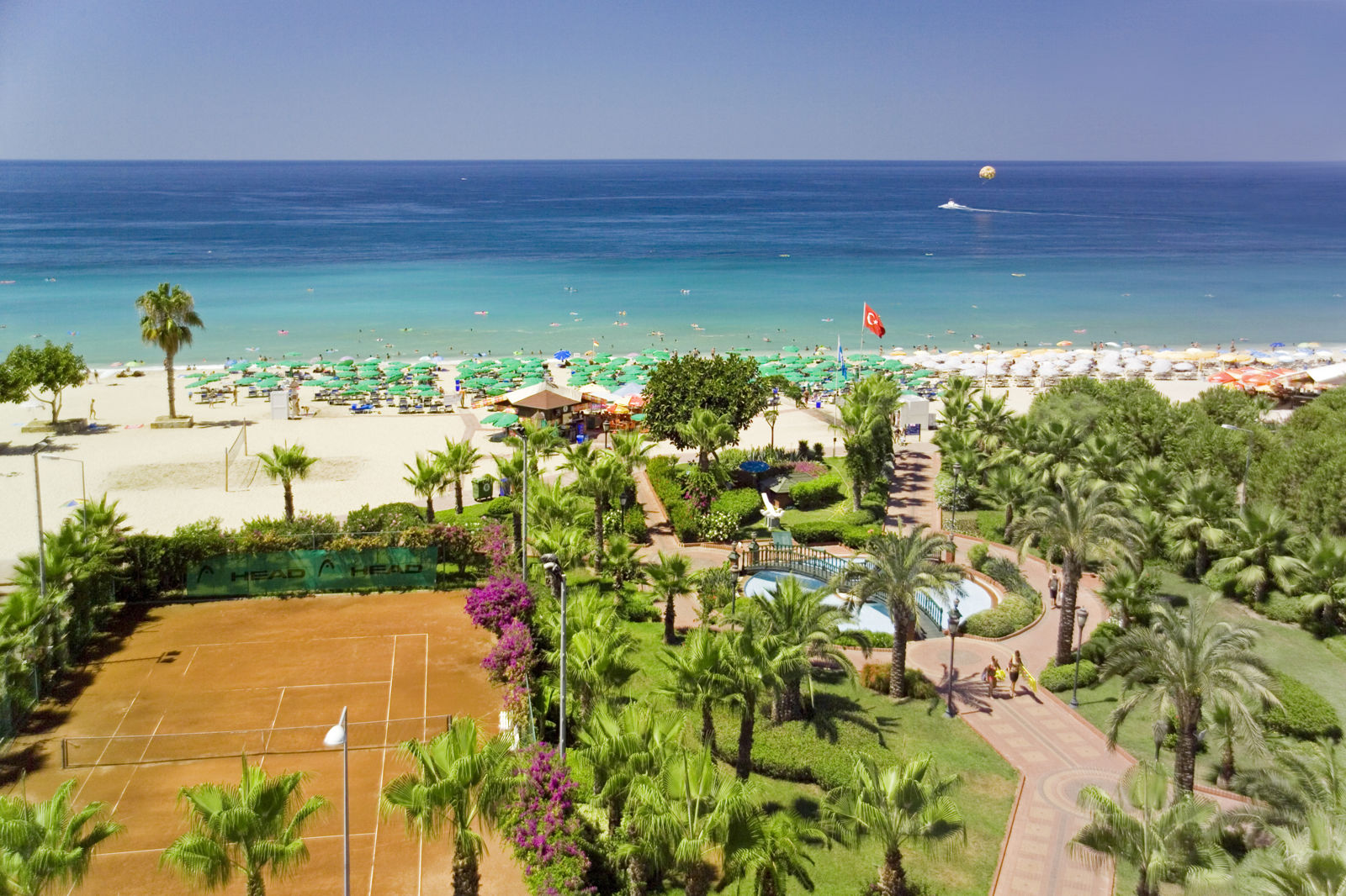 Direct naar: * Ligging () * Faciliteiten () * Restaurants&bars () * Zwembaden () * Hotelkamers () * Activiteiten&ontspanning () * Kinderfaciliteiten () * Verzorging () Ligging Riviera Hotel&Spa * Het centrum van Alanya op ca. 700 meter * Op ca. 50 meter van het Kleopatra zandstrand, gescheiden door een weg * Bushalte op ca. 50 meter van het hotel * Winkels en restaurants op ca. 100 meter Faciliteiten Riviera Hotel * 3 gebouwen met maximaal 5 verdiepingen * 4 liften, in elk gebouw een lift aanwezig * 193 kamers * 24-uursreceptie * Bagageruimte * Lobby * Wifi in het gehele hotel * Wasservice* * Doktersservice* * Kapsalon* * Privé parkeerterrein * Openbare parkeerplaatsen* * Tegen betaling Restaurants&bars * 1 buffetrestaurant * 3 bars Zwembaden * 1 buitenzwembad * Zonneterras met gratis ligbedden en parasols * Ligbedden, matrasjes en parasols tegen betaling op het strand Hotelkamers * Standaardkamer (1-3 personen) * Ca. 18 m² * Satelliettelevisie * Minibar* * Airconditioning * Telefoon* * Wifi * Kluisje * Koffie-/theezetfaciliteiten * Douche * Toilet * Föhn * Balkon met zitje * Zijzeezicht * Voordeelkamer (2-3 personen) * Kan qua faciliteiten en ligging afwijken van de standaardkamerActiviteiten&ontspanning * Beachvolleybal* * Tafeltennis * Tennis* * Watersporten aan het strand* * Fitnessruimte * Sauna* * Turks bad* * Binnenzwembad * Massages en schoonheidsbehandelingen* * 1x per week entertainment *Tegen betaling Kinderfaciliteiten * 1 kinderzwembad Verzorging Zomer: Riviera Hotel&Spa * Verblijf o.b.v. All Inclusive: * Ontbijt in buffetvorm (07.00-10.00 uur) * Laat ontbijt in buffetvorm (10.00-10.30 uur) * Lunch in buffetvorm (12.30-14.00 uur) * Diner in buffetvorm (19.00-21.00 uur) * Koffie/thee en koekjes (15.30-16.30 uur) * IJs (15.30-16.30 uur) * Geselecteerde lokale alcoholische en alcoholvrije drankjes van 10.00 tot 23.00 uur * Tegen betaling: import drankjes, verse vruchtensappen, roomservice, Turkse koffie, ijskoffie en alles na 23.00 uur Verzorging Winter: Ligging Riviera Hotel&Spa * Je verblijft o.b.v. All Inclusive: * Ontbijt in buffetvorm (07.00-10.00 uur) * Laat ontbijt in buffetvorm (10.00-10.30 uur) * Lunch in buffetvorm (12.30-14.00 uur) * Diner in buffetvorm (19.00-21.00 uur) * Koffie/thee en koekjes (15.30-16.30 uur) * IJs (15.30-16.30 uur) * Geselecteerde lokale alcoholische en alcoholvrije drankjes van 10.00 tot 23.00 uur * Tegen betaling: import drankjes, verse vruchtensappen, roomservice, Turkse koffie, ijskoffie en alles na 23.00 uur