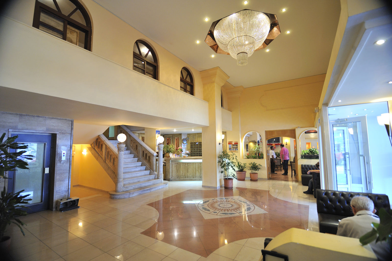 Direct naar: * Ligging () * Faciliteiten () * Restaurants&bars () * Zwembaden () * Hotelkamers () * Activiteiten&ontspanning () * Verzorging () *  Ligging Samos Hotel * Gelegen in het centrum van Samos-Stad * Ongeveer 800 meter van het openbare Roditses kiezelstrand * In de directe omgeving vind je tal van winkels, restaurants en bars * Een bushalte op circa 2 kilometer Faciliteiten * 1 gebouw met 5 verdiepingen * 1 lift* 90 kamers * 24-uursreceptie * Lobby * Kluisjes* * Bagageruimte * Tuin * Wifi * Roomservice* * Doktersservice* * Openbare parkeergelegenheid *Tegen betaling Restaurants&bars * 2 bars Zwembaden * 1 buitenzwembad * Zonneterras * Ligbedden en parasols gratis (zwembad) * Gratis badhanddoekenservice (zwembad en strand) Hotelkamers * Standaardkamer (1-3 personen) * Ca. 16 m² * Telefoon* * Airconditioning * Televisie * Koelkast * Wifi * Inloop douche * Toilet * Föhn * Balkon of terras met zitje * Tegen een meerprijs boekbaar met zijzeezicht (1-2 personen) of zeezicht (1-2 personen) * Babybedje (op aanvraag) *Tegen betaling Activiteiten&ontspanning * Fitness * Yoga* * Sauna * Massages* *Tegen betaling Verzorging Zomer: Samos Hotel * Verblijf o.b.v. Logies&Ontbijt: ontbijt in buffetvorm * Tegen een meerprijs verblijf je o.b.v. Halfpension: Ontbijt in buffetvorm en diner in de vorm van een vastmenu