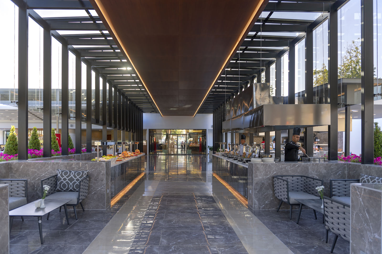 Direct naar: * Ligging () * Faciliteiten () * Restaurants&Bars () * Hotelkamers () * Sport&Ontspanning () * Kinderfaciliteiten () * Zwembaden&Strand () * Verzorging () Ligging: Seven Seas Hotel Blue * Gelegen in Titreyengol * Direct aan het privéstrand * Centrum van Side op ca. 8 kilometer * Manavgat op ca. 6 kilometer * Bushalte voor het hotel * Winkels, restaurants en bars op ca. 500 meter Faciliteiten * 10 gebouwen met maximaal 4 verdiepingen * Niet in elk gebouw is een lift aanwezig * 360 kamers * 24-uursreceptie* Bagageruimte * Lobby * Tuin * Wifi * Kapsalon* * Winkels en minimarkt* * Wasservice* * Doktersservice* * Privé parkeergelegenheid *Tegen betaling Restaurants&bars * 1 buffetrestaurant * 4à-la-carterestaurants waaronder een Turks, Mexicaans, Italiaans en visrestaurant (vooraf reserveren) * Snackbar * Patisserie * 8 bars Hotelkamers * Standaardkamer tuinzicht (max. 3 volw. + 1 kind) * Ca. 25 m² * Telefoon* * Airconditioning * Satelliettelevisie * Minibar * Kluisje * Koffie-/theezetfaciliteiten * Wifi * Douche * Toilet * Föhn * Badjas en slippers * Balkon of terras met zitje * Tegen een meerprijs te boeken met zwembadzicht of zeezicht *Tegen betaling * Bungalowkamer tuinzicht (1-3 personen) * Ca. 25 m² * Gelegen in de bijgebouwen * Dezelfde faciliteiten als de standaardkamer * Standaardkamer tuinzicht met stapelbed (min. 2 pers. en max. 3 volw. + 1 kind) * Ca. 25 m² * Stapelbed voor de kinderen * Dezelfde faciliteiten als de standaardkamer * Standaardkamer zwembadzicht en een ruim balkon of terras (min. 2pers. en max. 3 volw. + 1 kind) * Ca. 25 m² * Dezelfde faciliteiten als de standaardkamer * Familiekamer (3-5 personen) * Ca. 43 m² * Bestaat uit 2 ruimtes * Dezelfde faciliteiten als de standaardkamer Sport&Ontspanning * Fitness * Aerobics * Boogschieten * Basketbal * Volleybal * Beachvolleybal * Boccia * Darts * Biljart* * Tafeltennis * Tennis (verlichting en materiaal tegen betaling) * Minigolf * Watersporten aan het strand* * Turks bad * Sauna * Massages en behandelingen* * Dagelijks entertainnment * 3 avonden live muziek *Tegen betaling Kinderfaciliteiten * 1 kinderzwembad * 1 kinderzwembad met glijbaantjes * Miniclub (0-4 jaar) * Midiclub (5-12 jaar) * Speeltuin * Bioscoop * Klimwand * Speelplaats op het strand * Babybedje (op aanvraag) * Babysitservice (op aanvraag en tegen betaling) Zwembaden&Strand * 2 buitenzwembaden * 2 buitenzwembaden met glijbanen (op vaste tijden geopend) * Zonneterras * Privéstrand * Ligbedden, matrasjes en parasols gratis (zwembad en strand) * Gratis badhanddoekenservice Let op, voor sommige glijbanen geldt er een minimale lengte van 1 meter 40 of een min. leeftijd) Verzorging Zomer: Seven Seas Hotel Blue * Verblijf o.b.v. Ultra All Inclusive: * Ontbijtin buffetvorm (07.00-10.00 uur) * Laat ontbijt in buffetvorm (10.00-10.30 uur) * Lunch in buffetvorm (12.30-14.30 uur) * Diner in buffetvorm (18.30-21.00 uur) * Snacks (11.00-18.00 uur) * Patisserie (11.00-18.00 uur) * IJs (11.00-21.00 uur) * Nachtsnack (23.00-07.00 uur) * Tijdens je verblijf kun je 2 maal per week dineren in 1 van de 3 à-la-carterestaurants (vooraf reserveren) * Geselecteerde lokale alcoholische en alcoholvrije drankjes en een aantal import drankjes 24 uur per dag * Tegen betaling: import drankjes, roomservice en het vis à-la-carterestaurant (vooraf reserveren)
